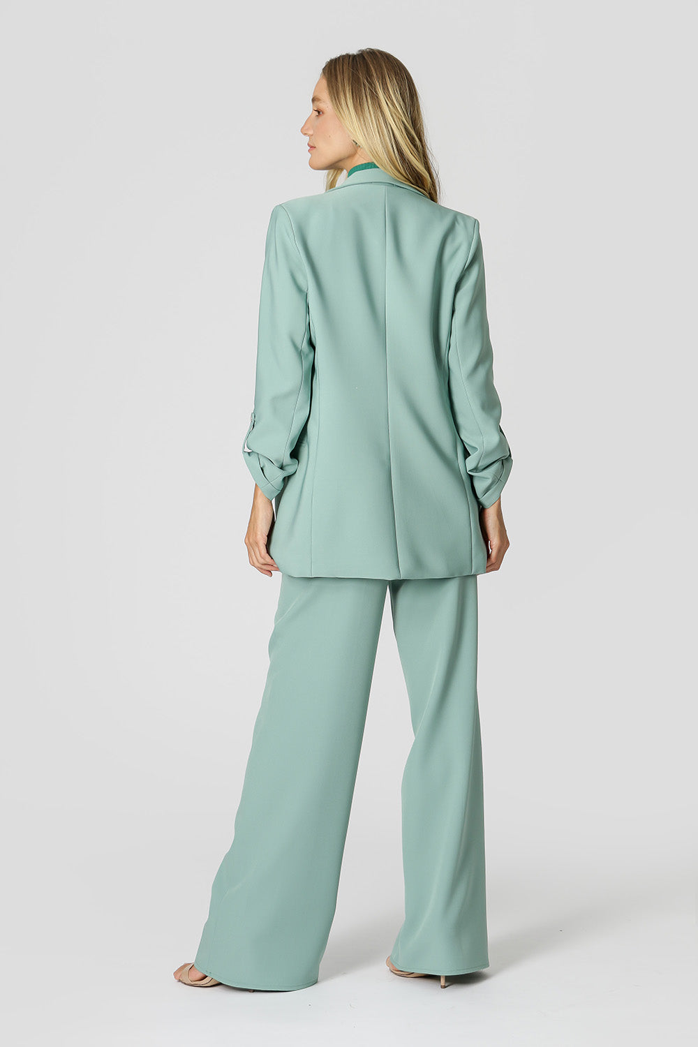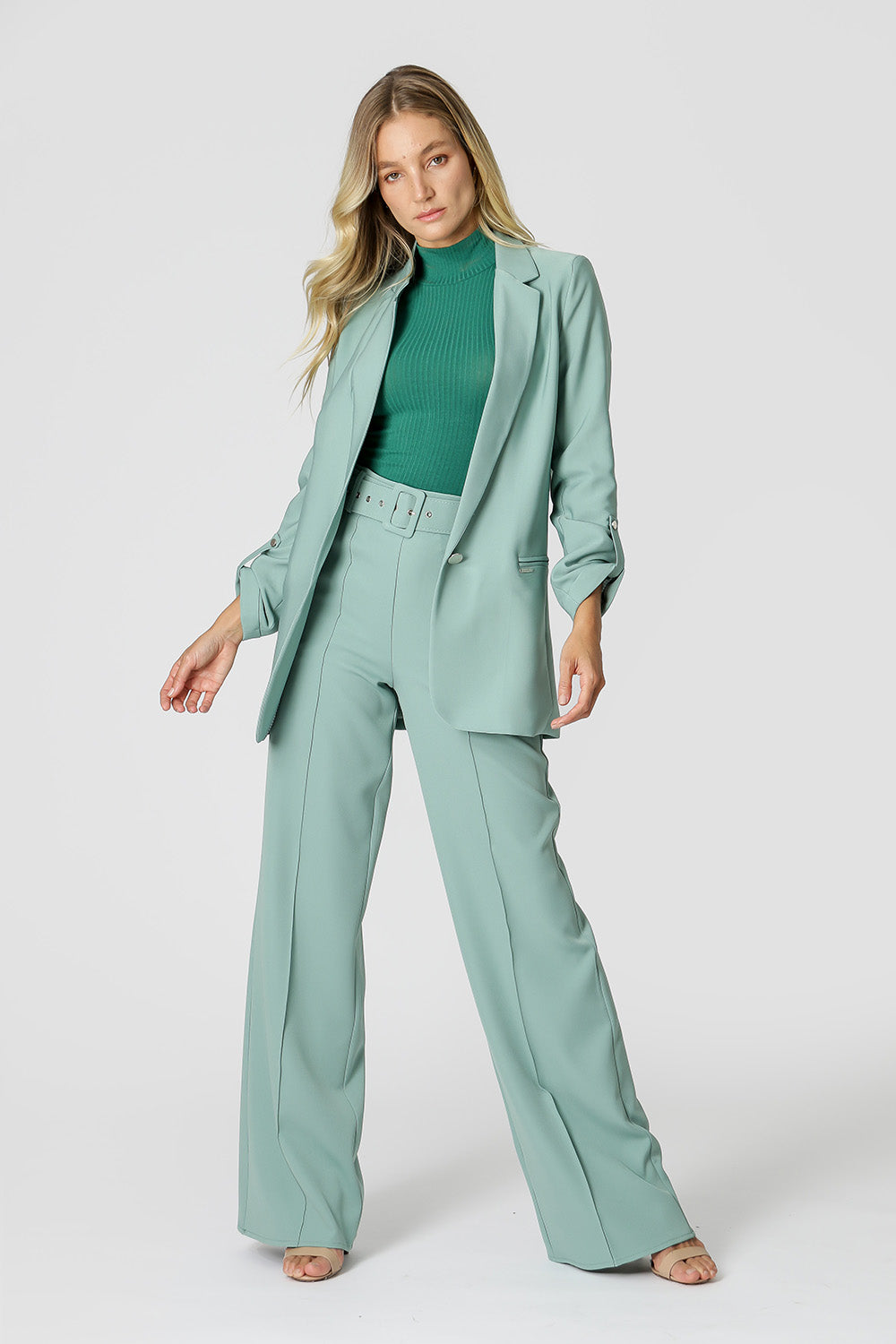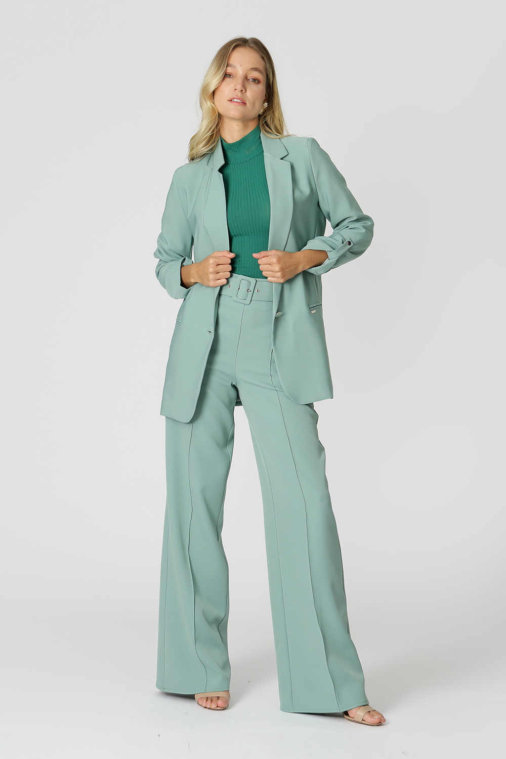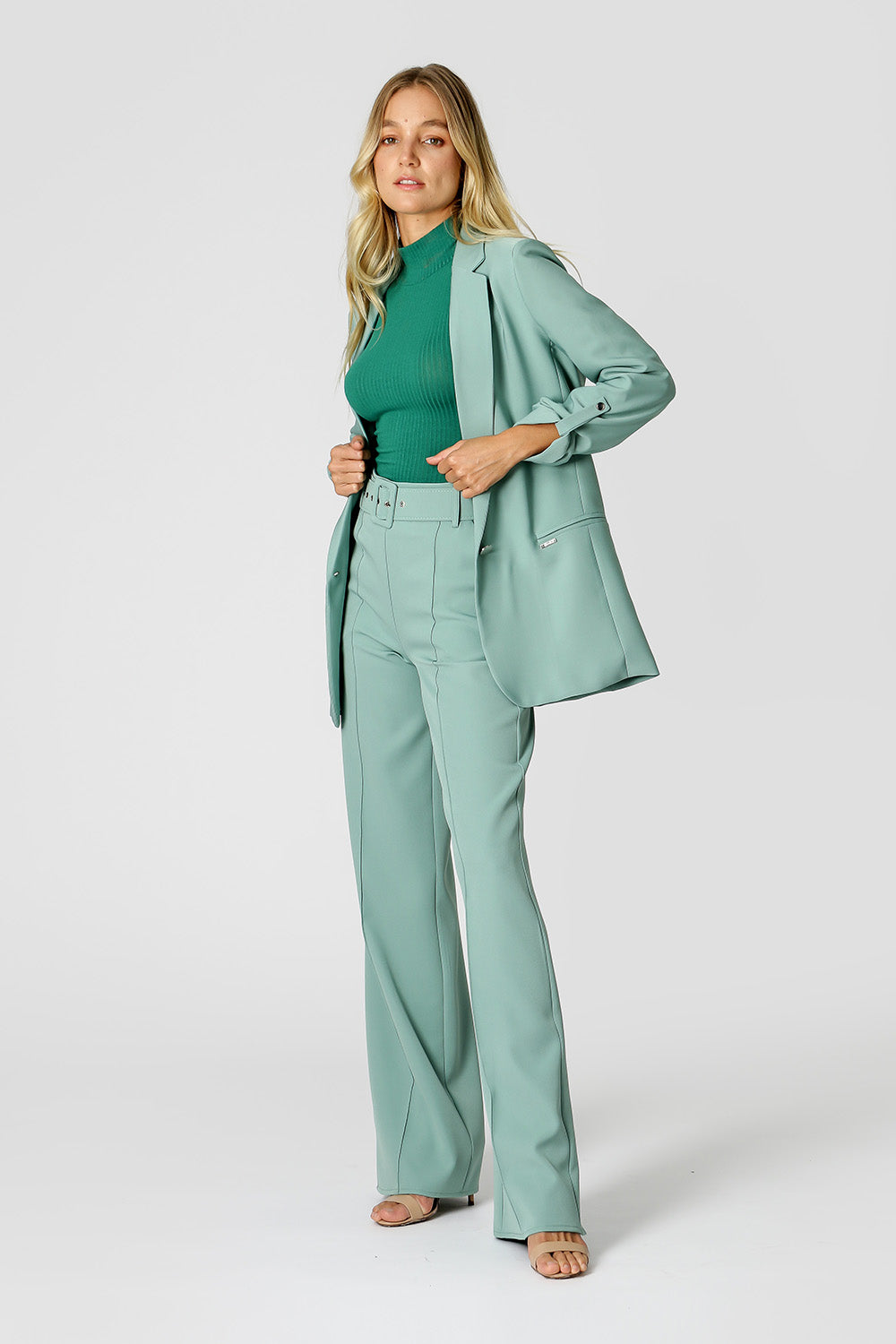 Blazer de alfaiataria com shape longline, com detalhe de martingale e com forro estampado.