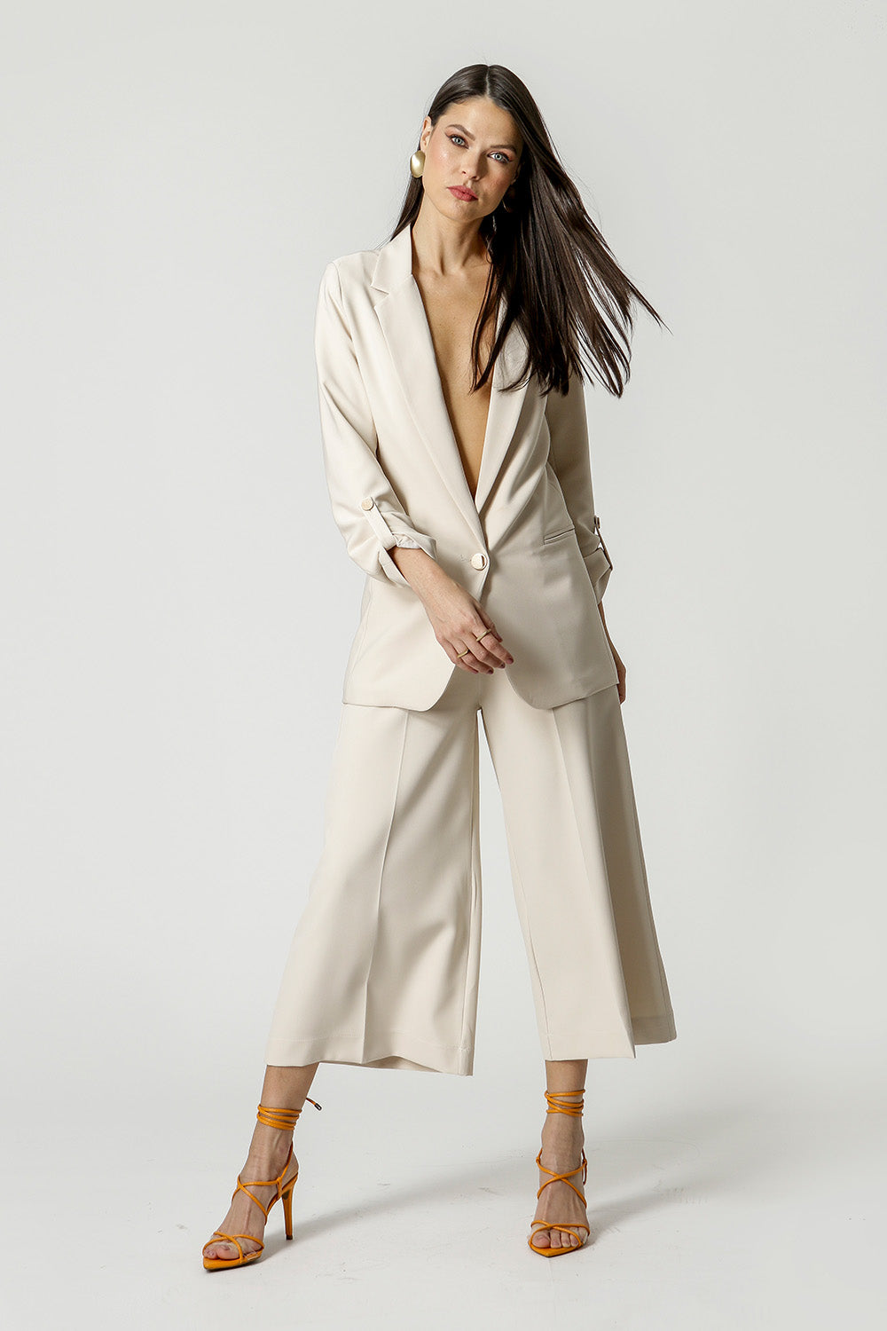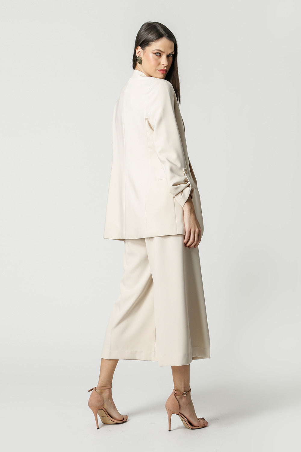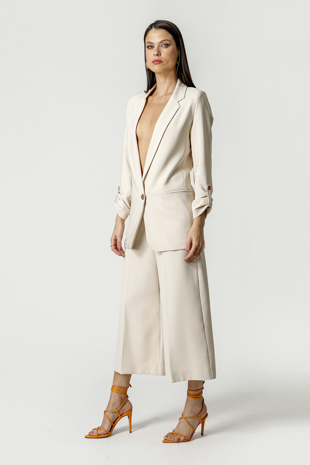 Blazer de alfaiataria com shape longline, com detalhe de martingale e com forro estampado.