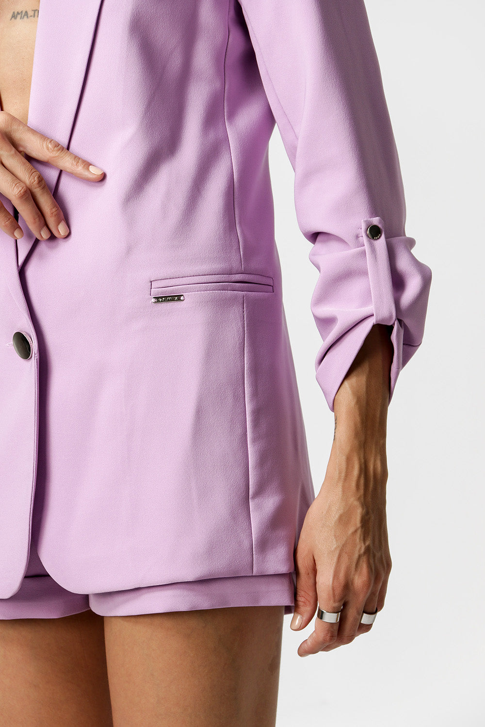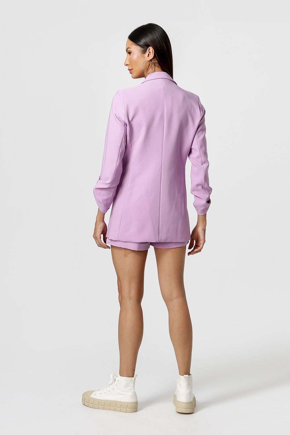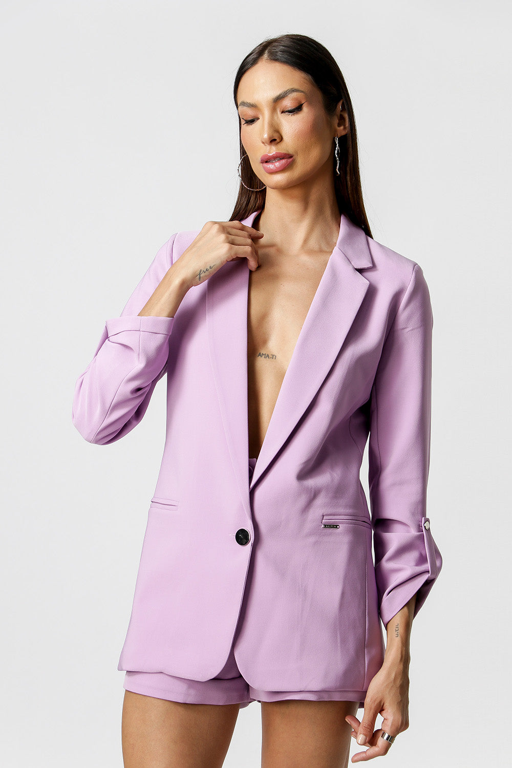 Blazer de alfaiataria com shape longline, com detalhe de martingale e com forro estampado.