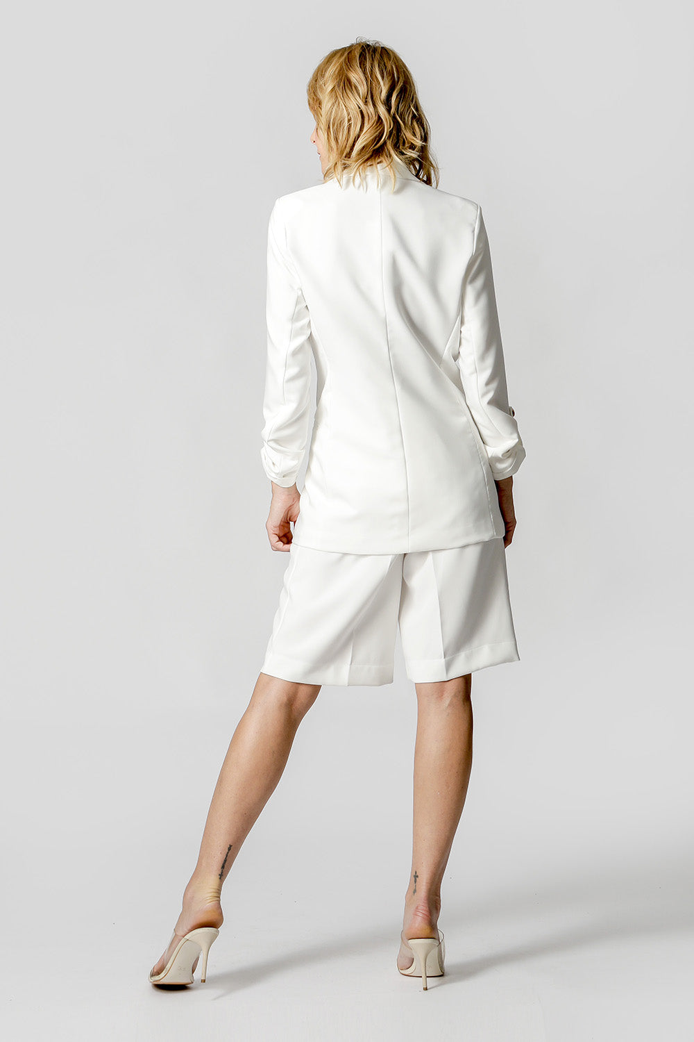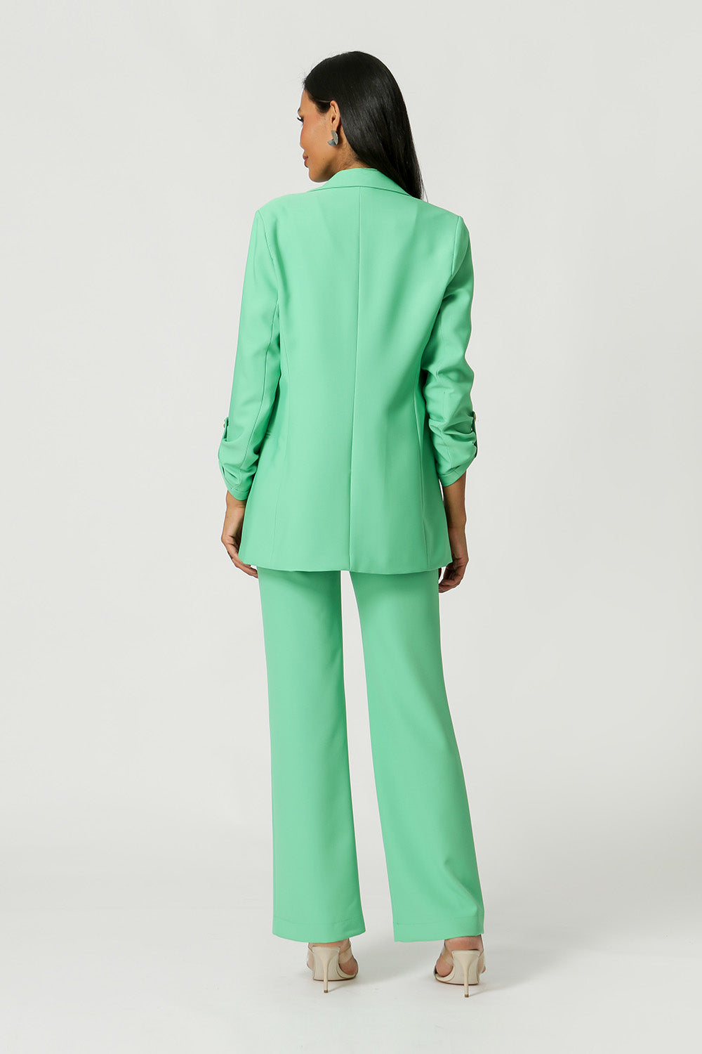 Blazer de alfaiataria com shape longline, com detalhe de martingale e com forro estampado.
