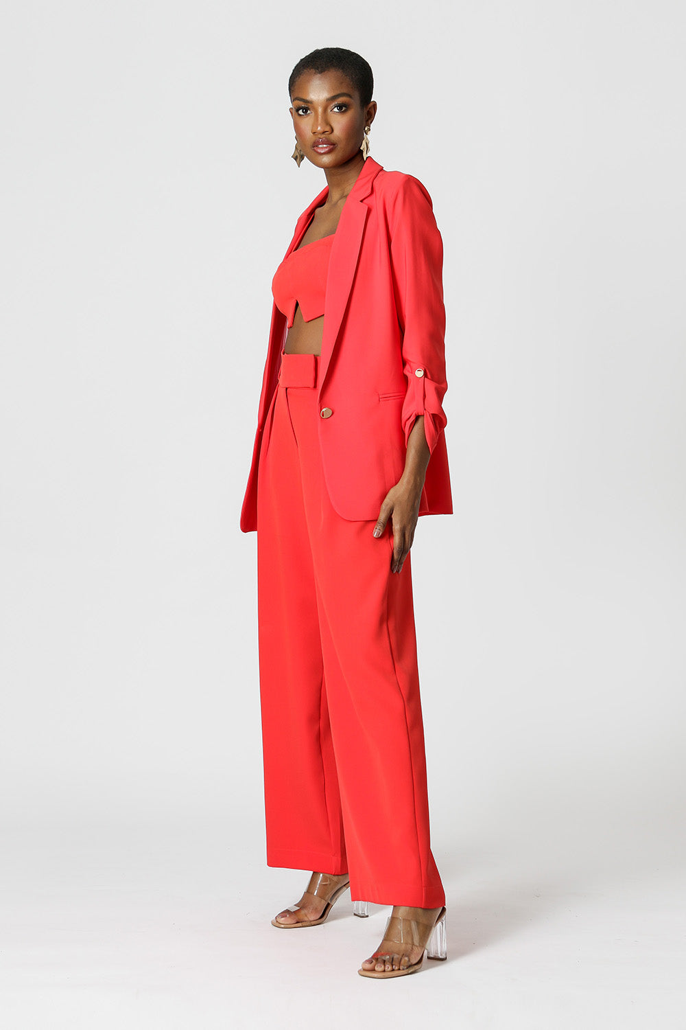 Blazer de alfaiataria com shape longline, com detalhe de martingale e com forro estampado.