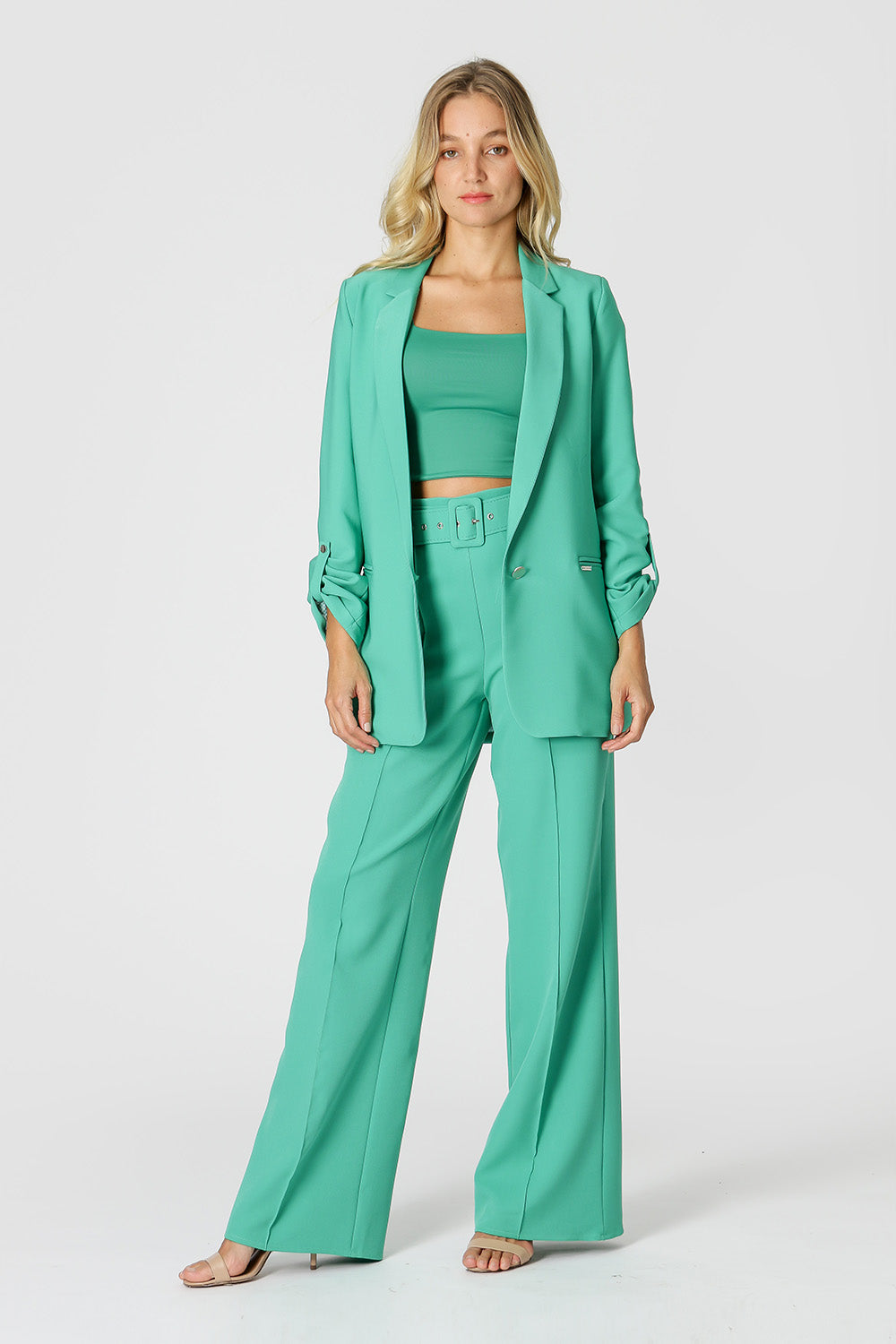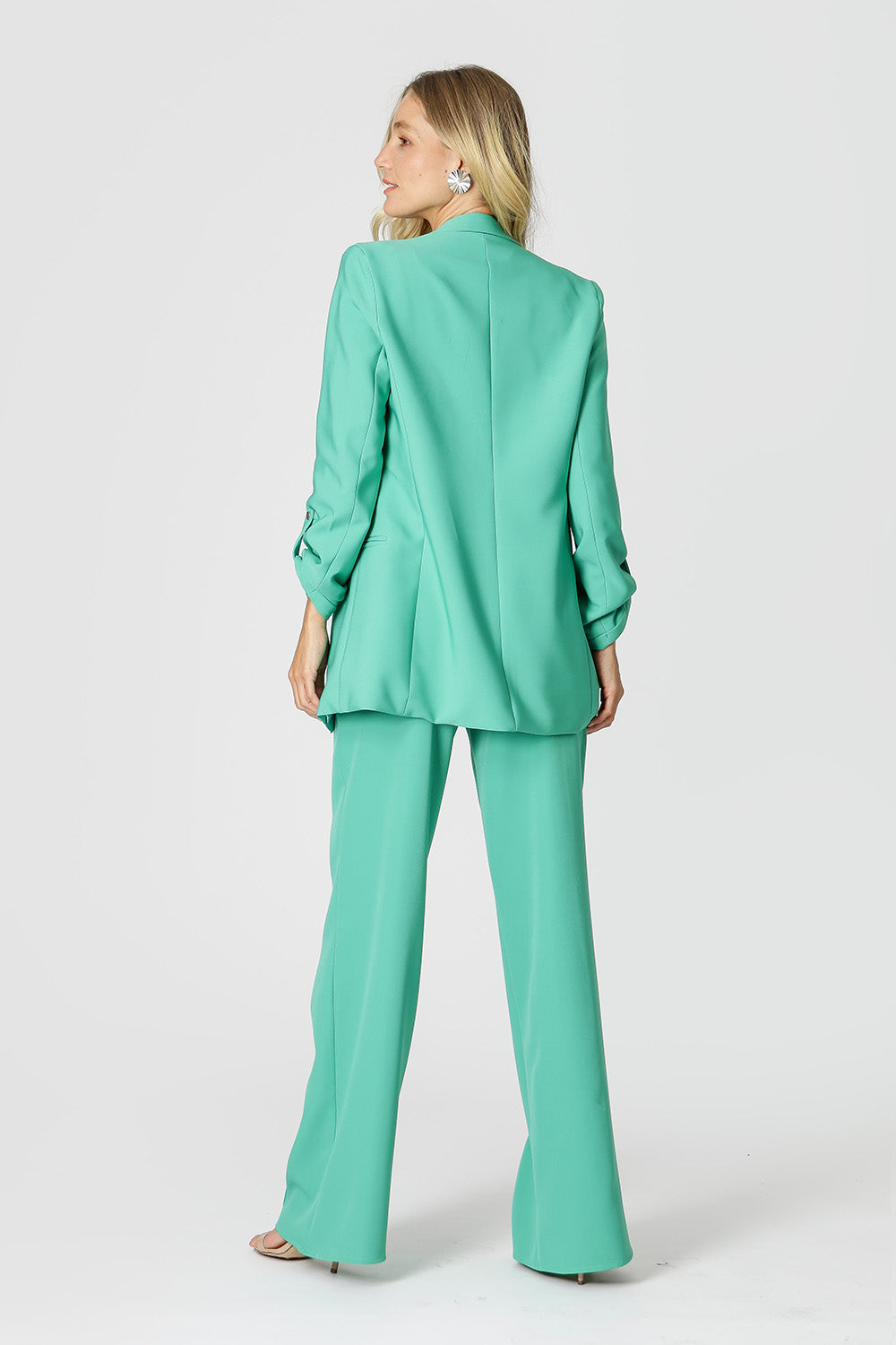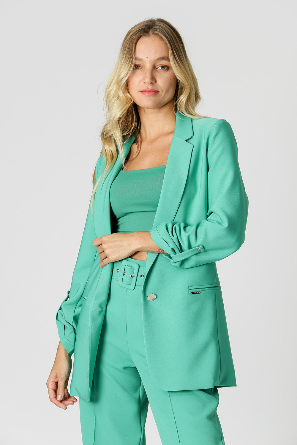 Blazer de alfaiataria com shape longline, com detalhe de martingale e com forro estampado.