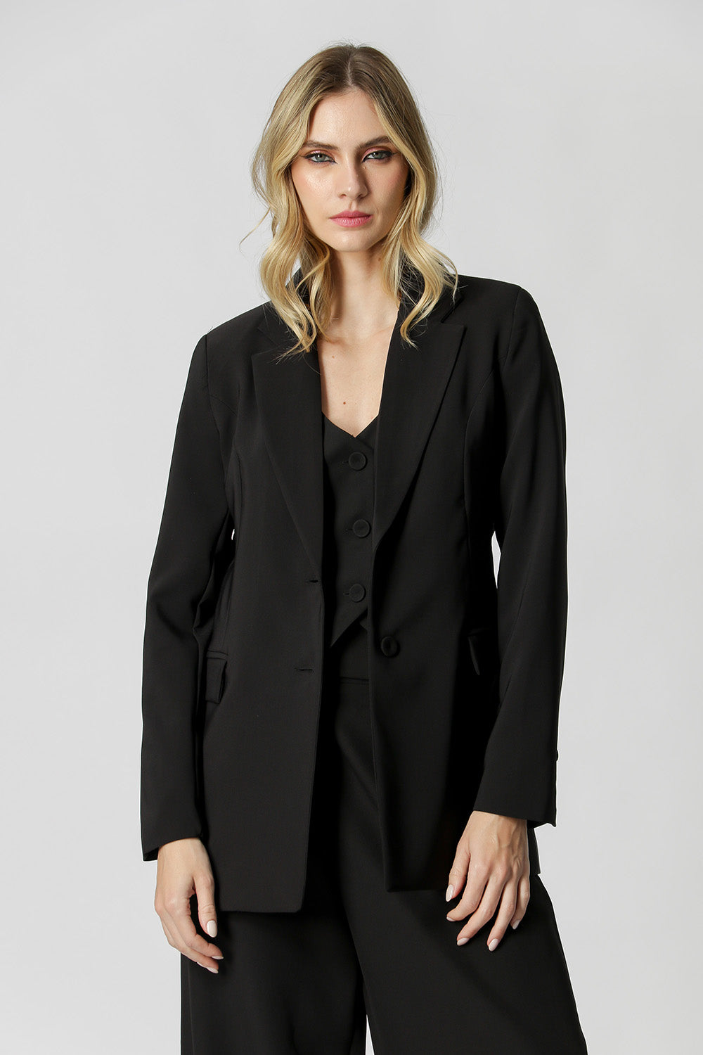 Blazer com detalhe de botões forrado do próprio tecido. Modelo confeccionado em tecido Alfaiataria. Um modelo elegante e super versátil para compor em diversos looks aposte.