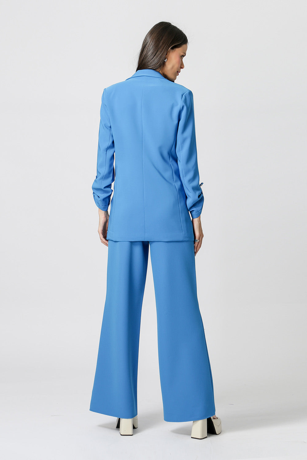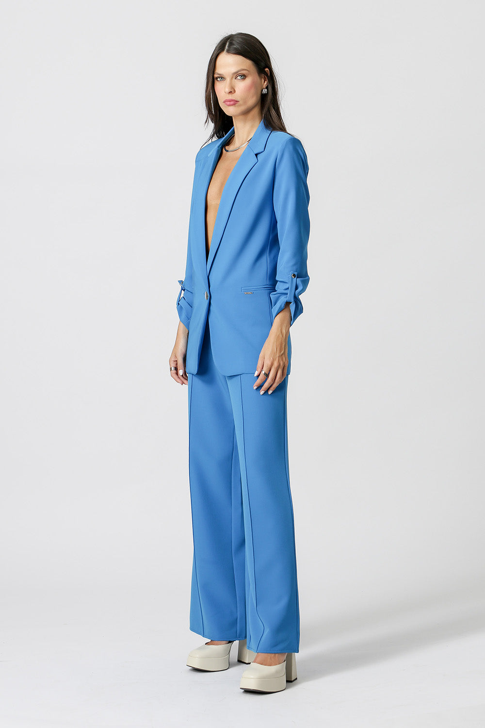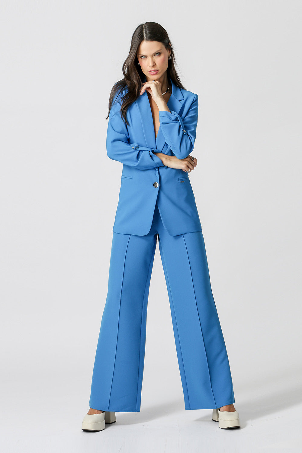 Blazer de alfaiataria com shape longline, com detalhe de martingale e com forro estampado.