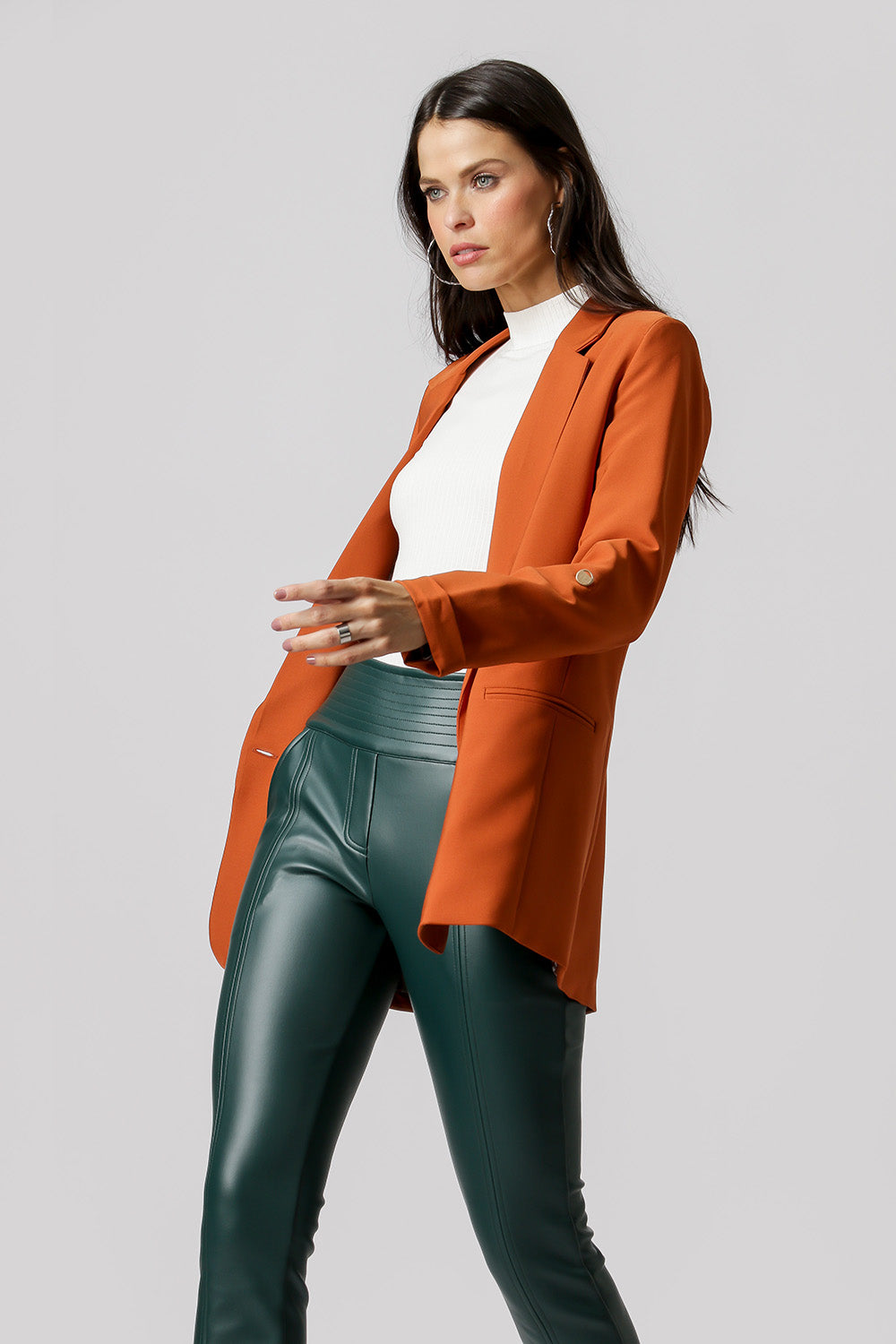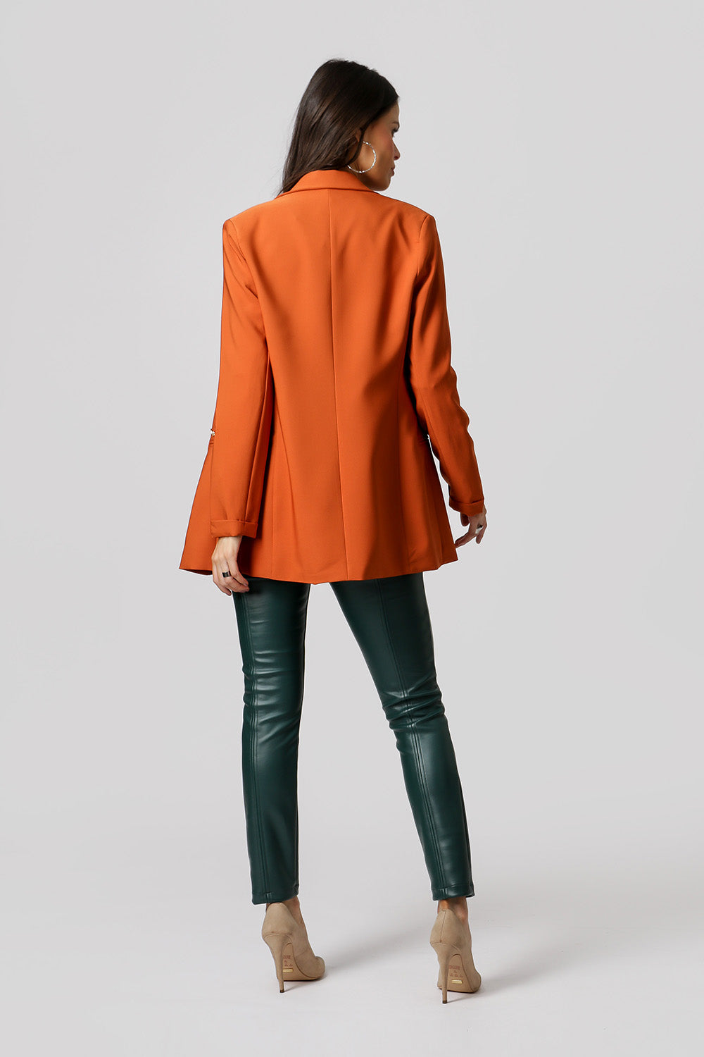 Blazer de alfaiataria com shape longline, com detalhe de martingale e com forro estampado.