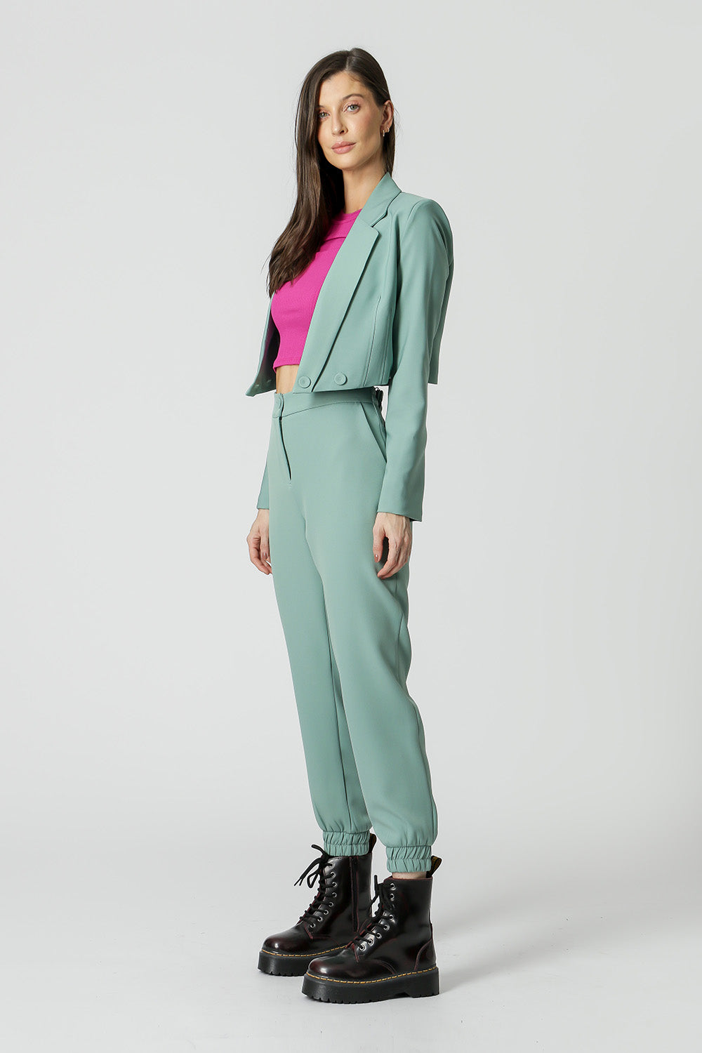 Blazer de alfaitaria com shape cropped. A peça possui detalhe de martingale com botões nas mangas, botão frontal e com forro estampado. Uma peça atemporal para muitas ocasiões.