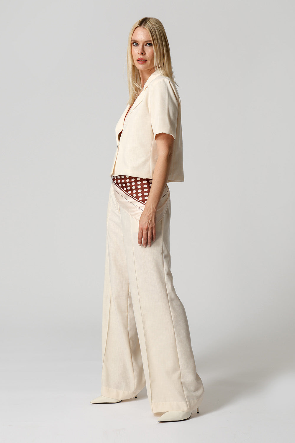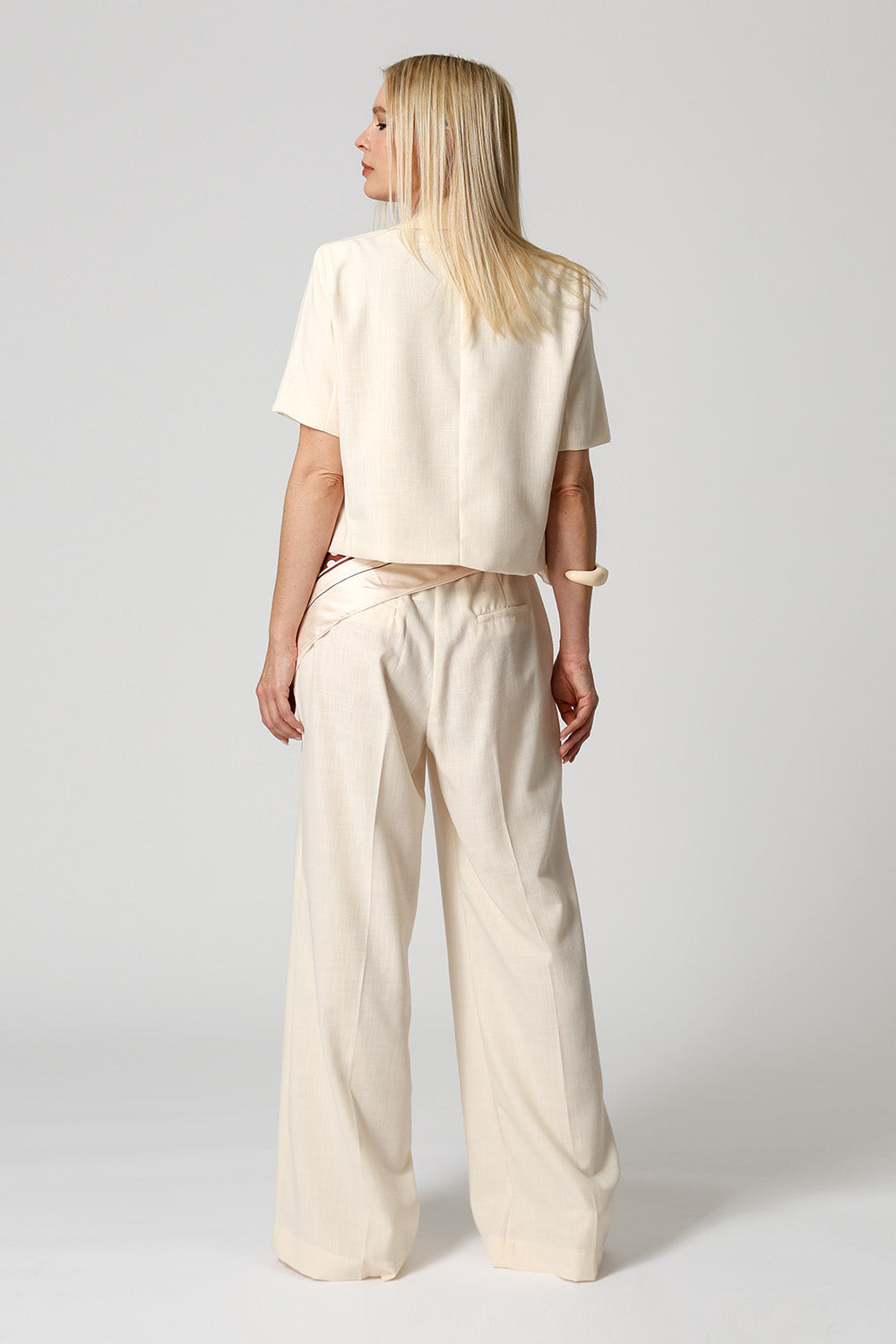 Blazer de modelagem cropped, com mangas curtas e fechamento frontal por botão metálico. Confeccionado em linho misto, oferece leveza e sofisticação na medida certa, ideal para compor produções modernas e versáteis.