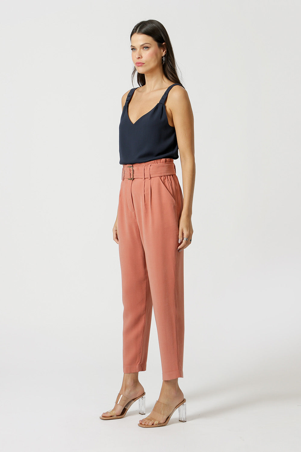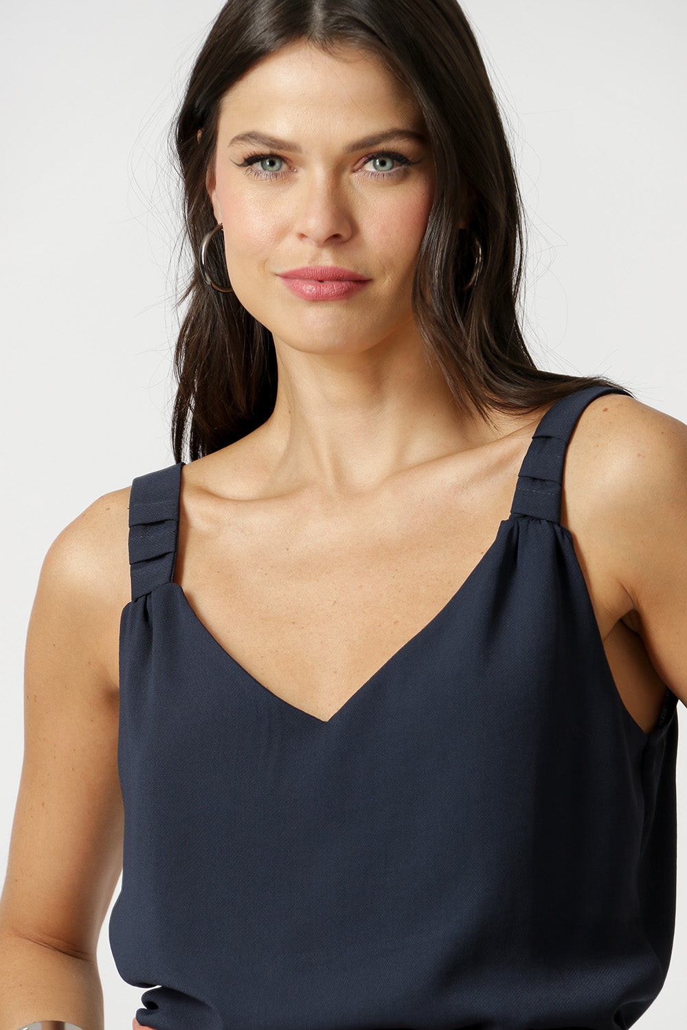Blusa modelo regata feita em crepe. Com detalhe de pregas nas alças. Decote V frente e costas. Peça feminina e delicada, perfeita para looks de verão.
