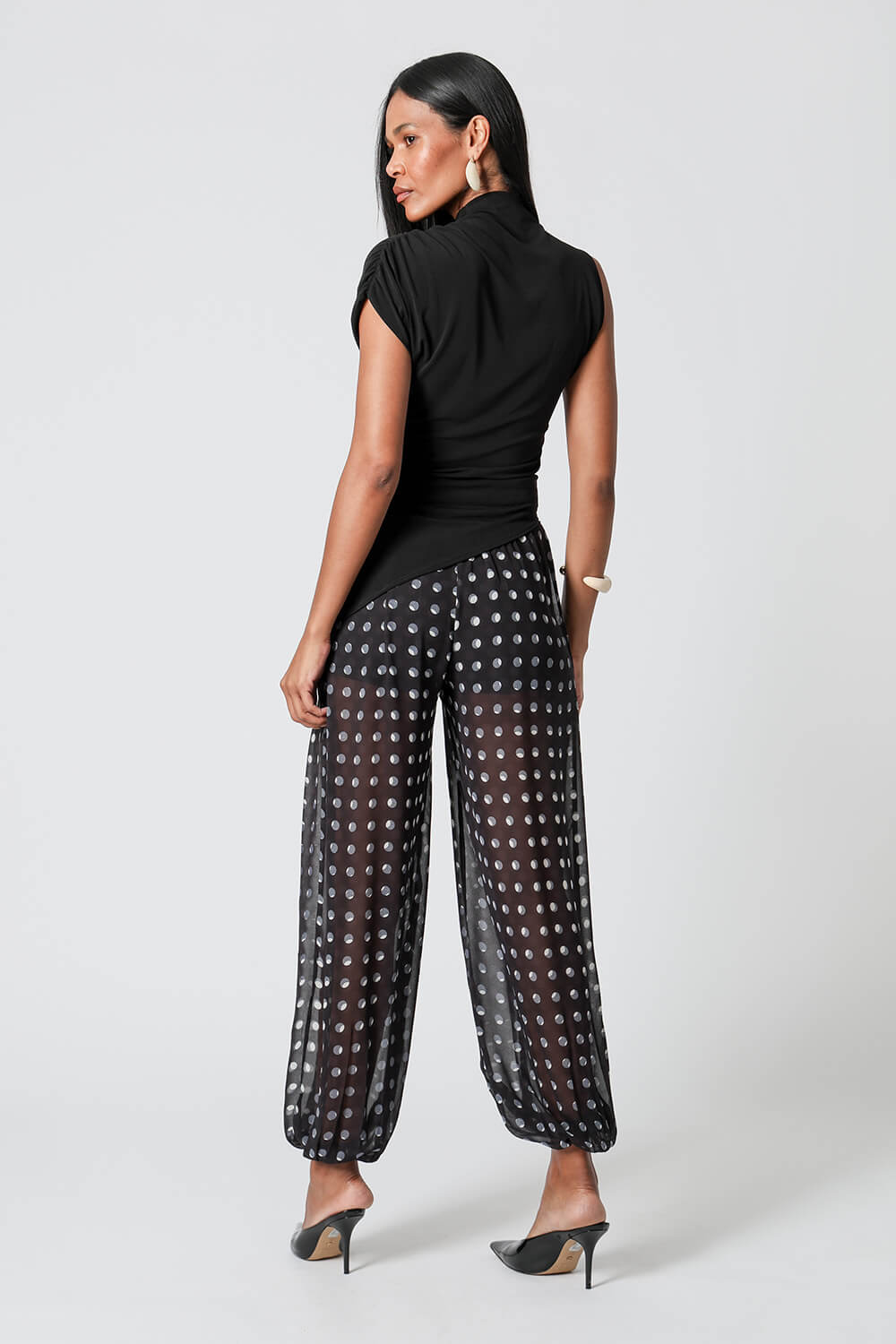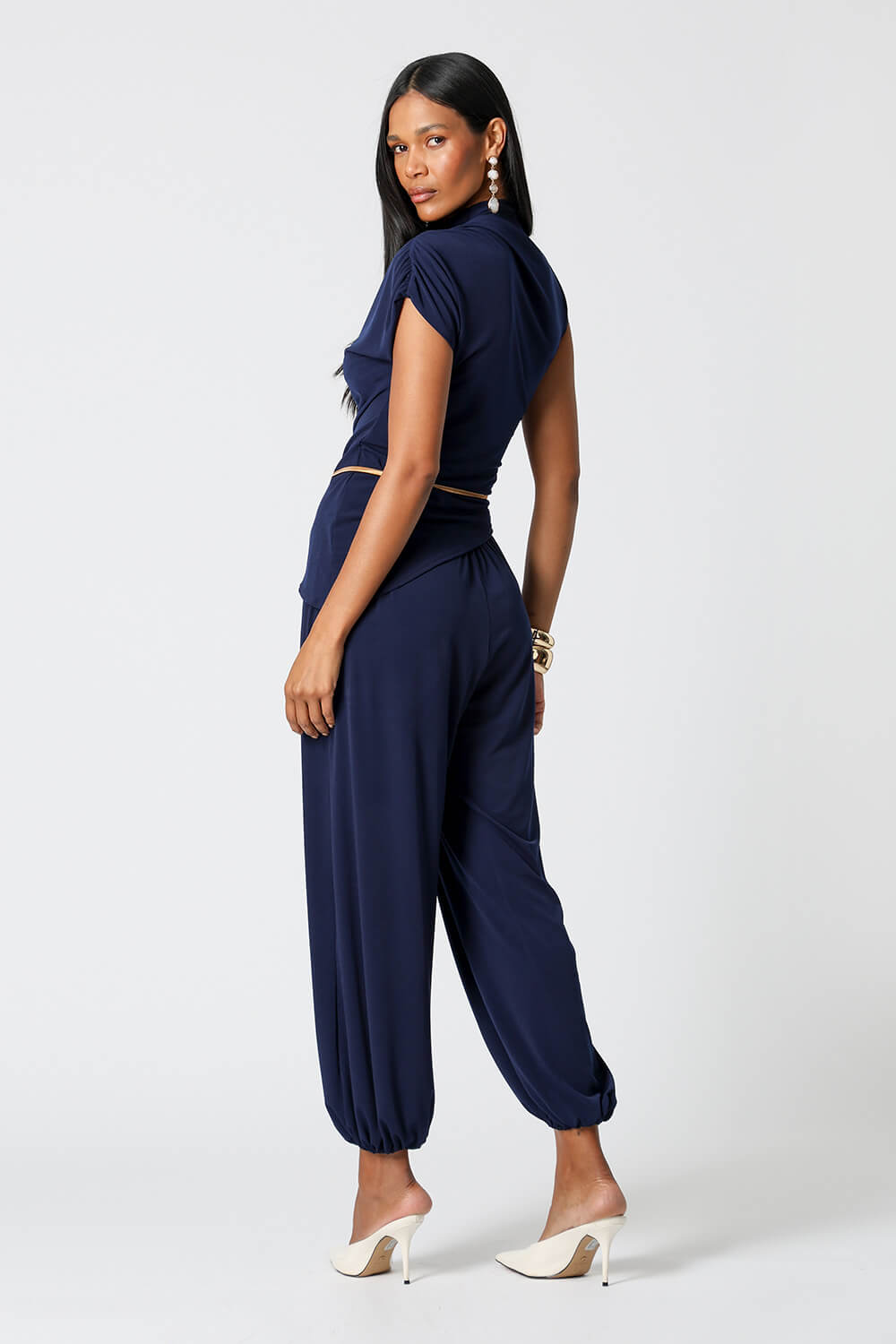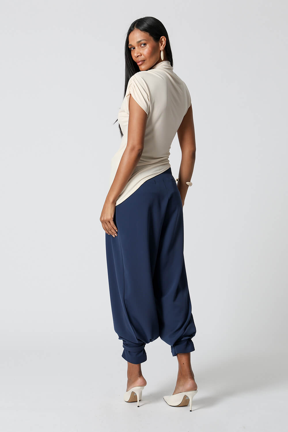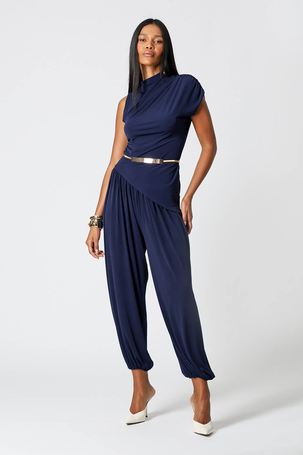 Blusa moderna com design assimétrico e detalhe franzido no ombro, confeccionada em malha ITY de toque macio e caimento leve. Ideal para looks elegantes e confortáveis.