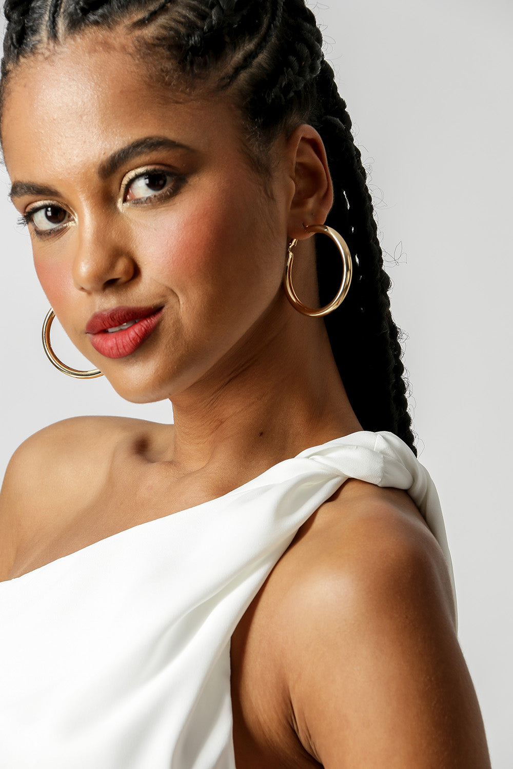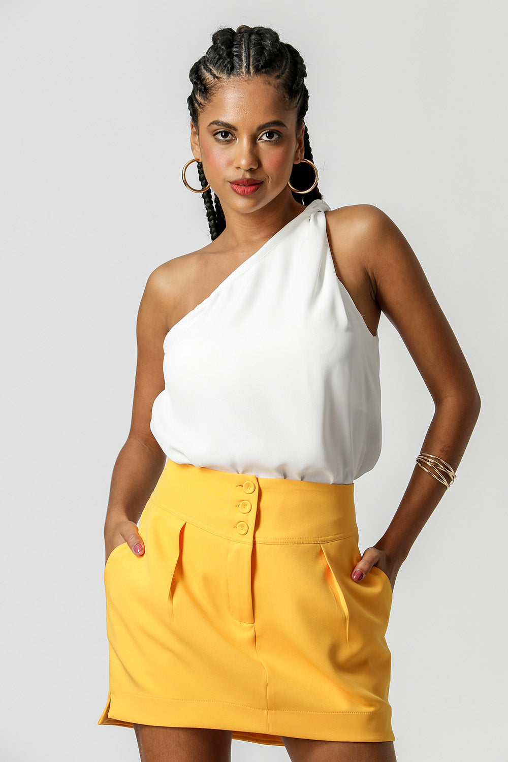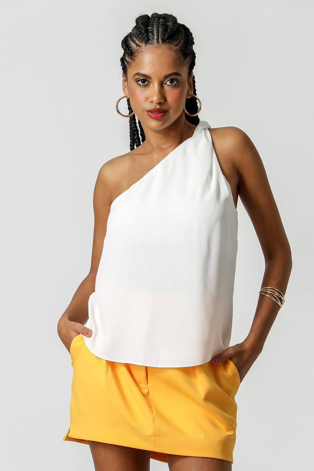 Blusa de um ombro só com detalhe de torcido. Modelo com shape fluído e feita em crepe. Ideal para um look casual chic.
