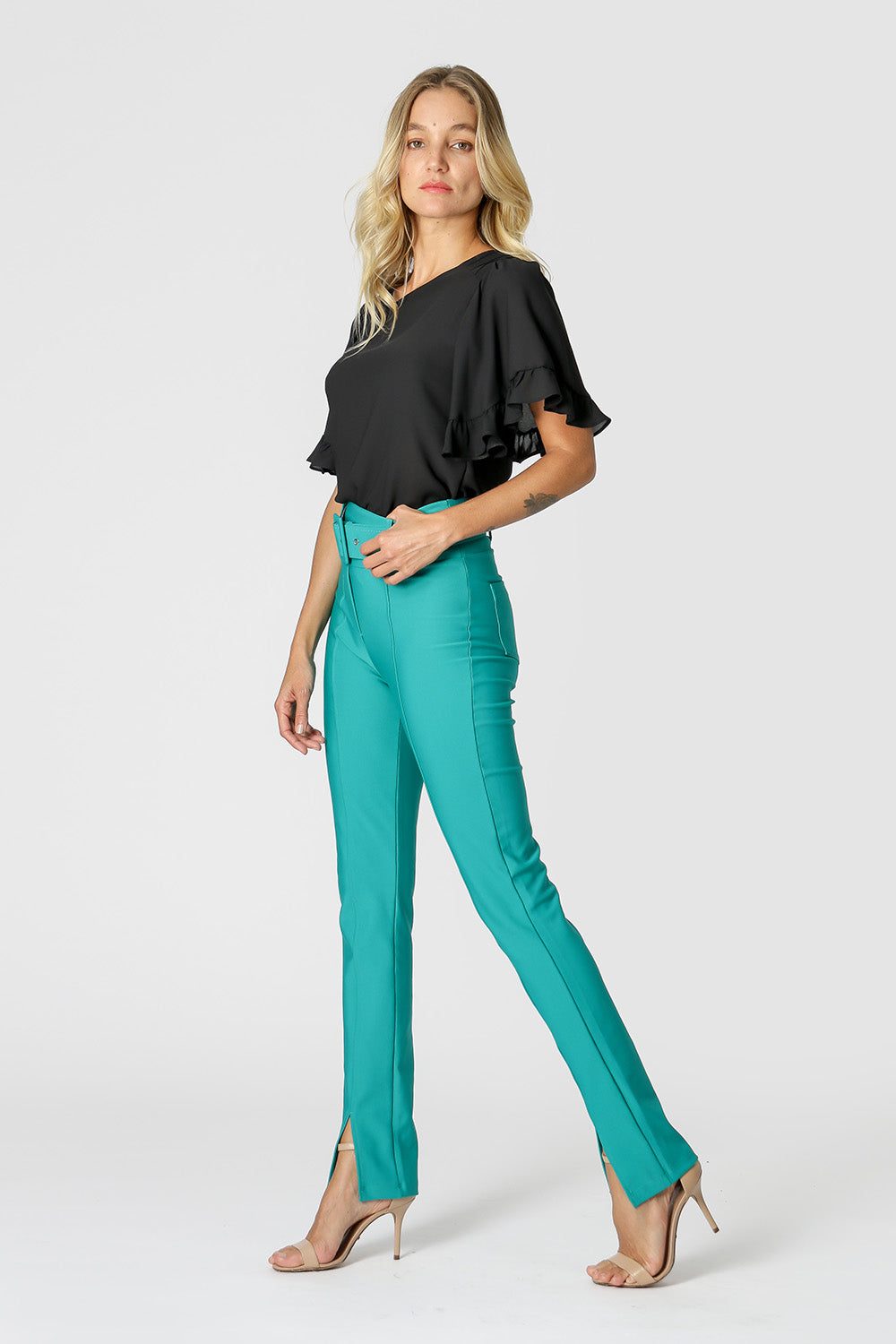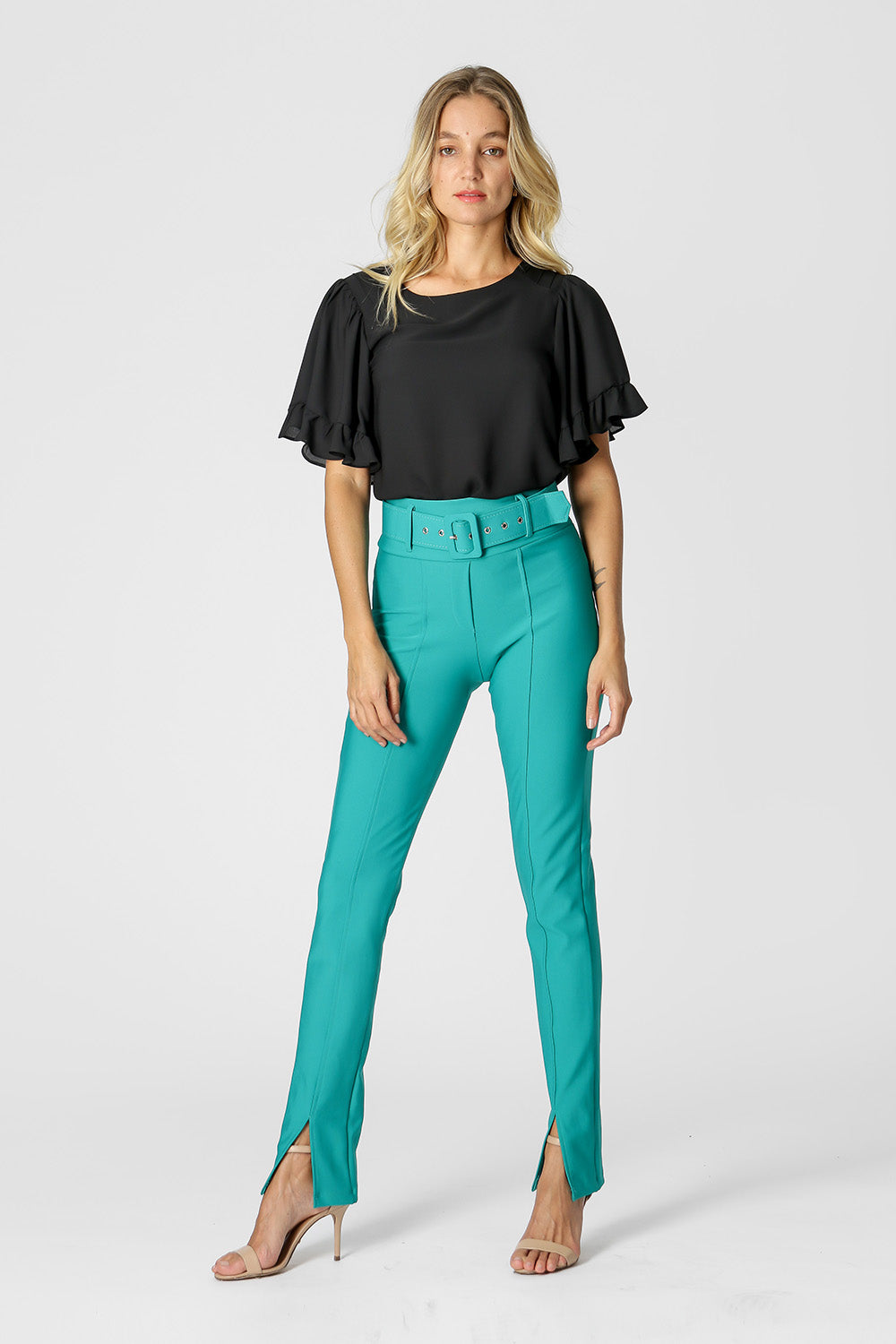 Blusa feita em crepe fluído , com detalhe de franzido nas mangas e recortes nos ombros. Peça com toque de elegância, ideal para looks de trabalho.