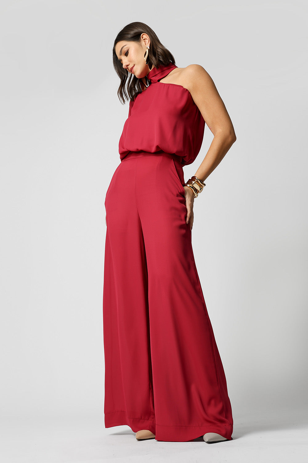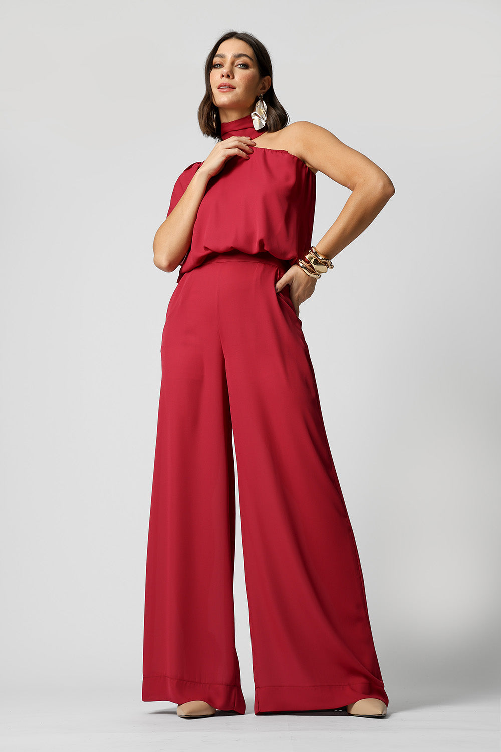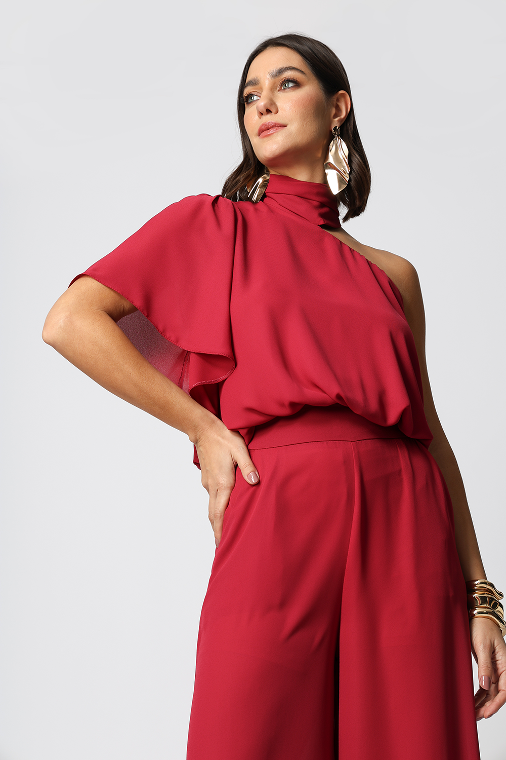 Blusa Ombro Único Com Faixa - VINHO