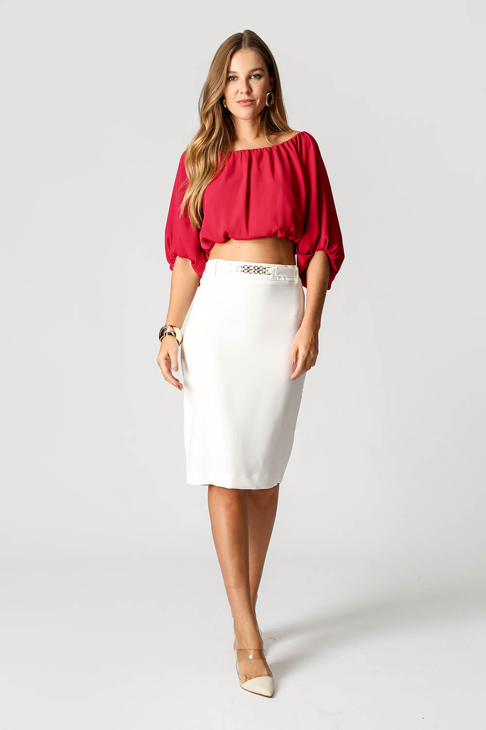 Blusa balonê ombro a ombro, as mangas volumosas trazem um toque feminino e cheio de personalidade, criando um visual descontraído e charmoso.