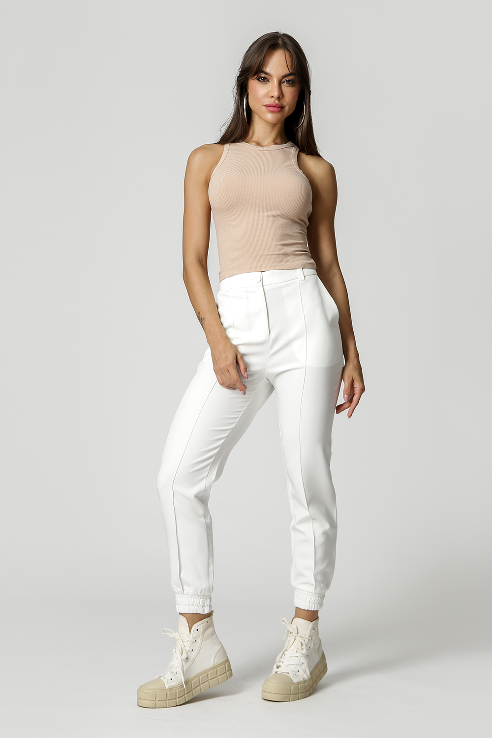 Blusa básica sem manga. Confeccionada em tecido canelado slim. Um modelo básico, confortável e ideal para usar em diversos looks.