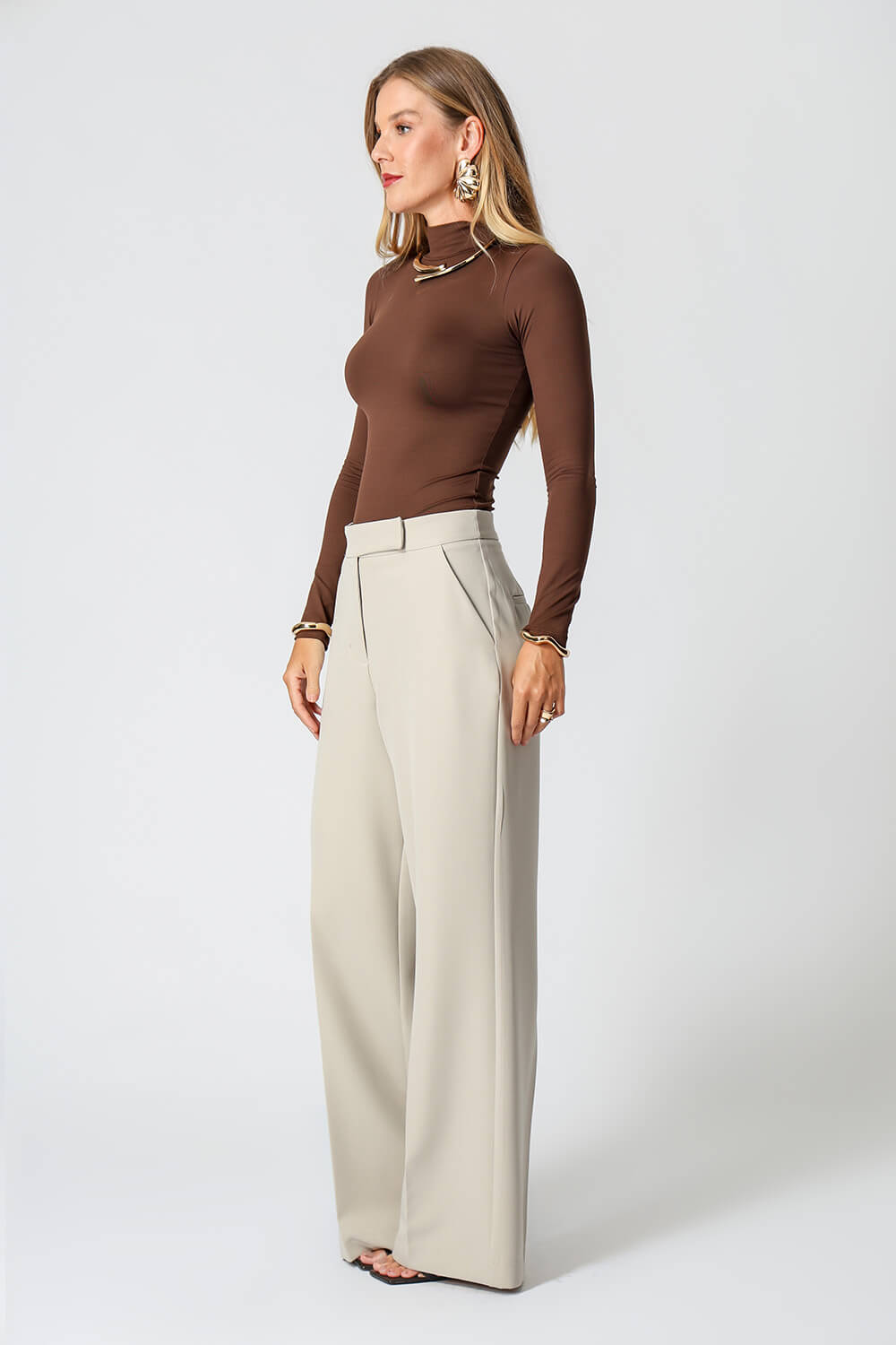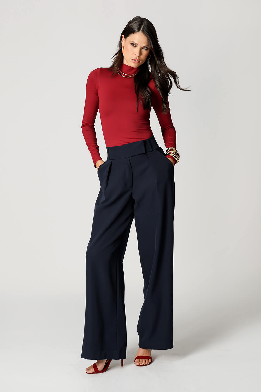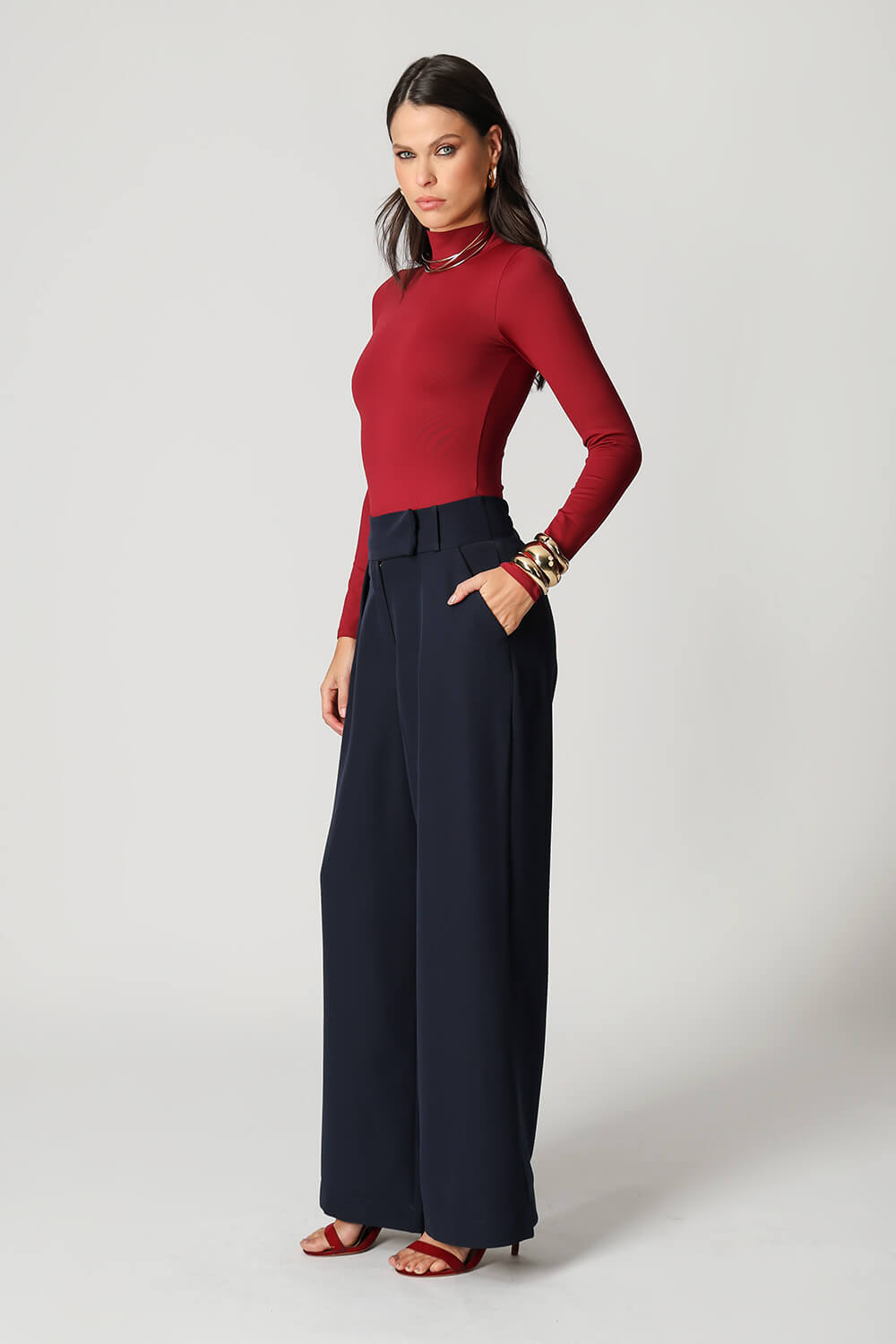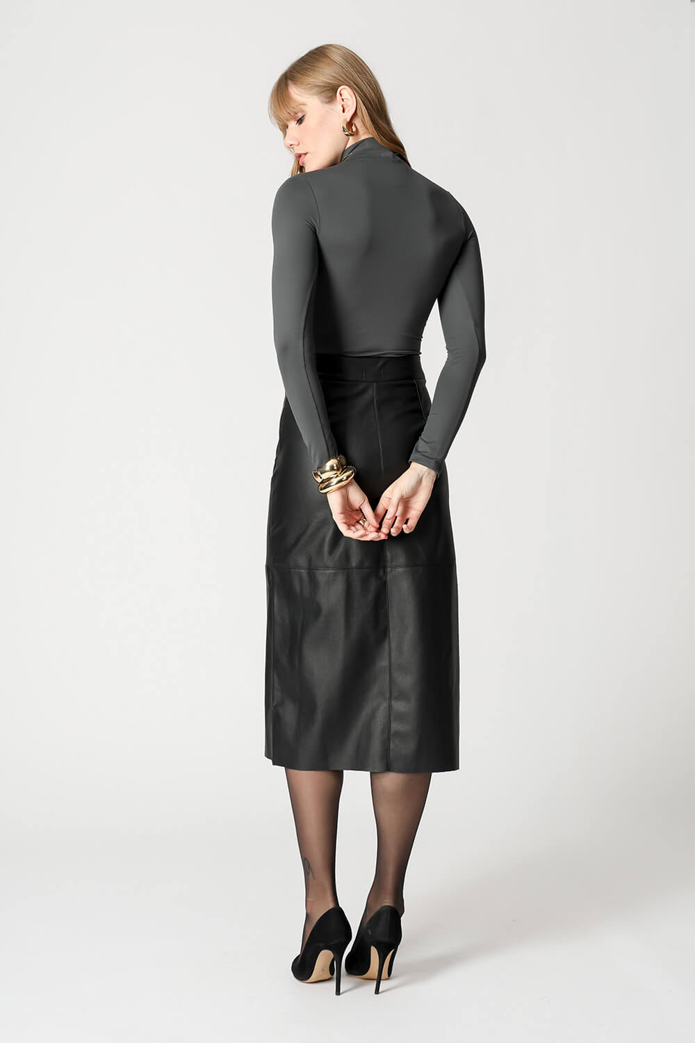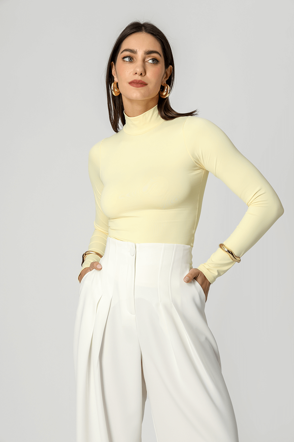 Blusa básica em shape que modela o corpo, manga longa e gola alta. Peça ideal para trabalhar looks com sobreposições. Peça confeccionada em malha de Amni.