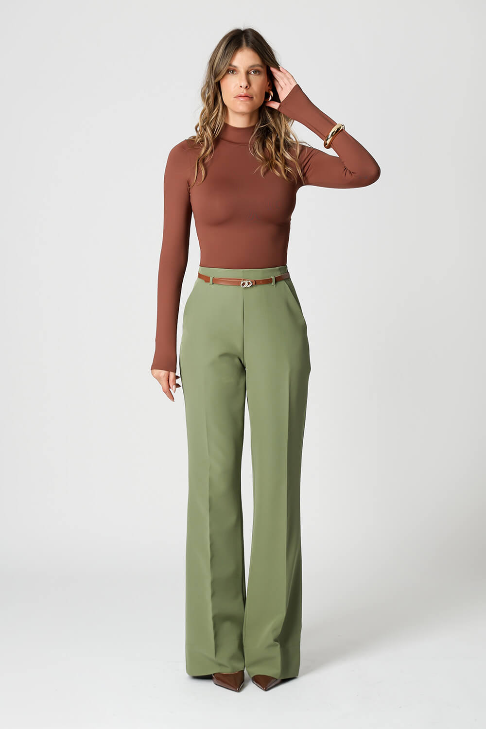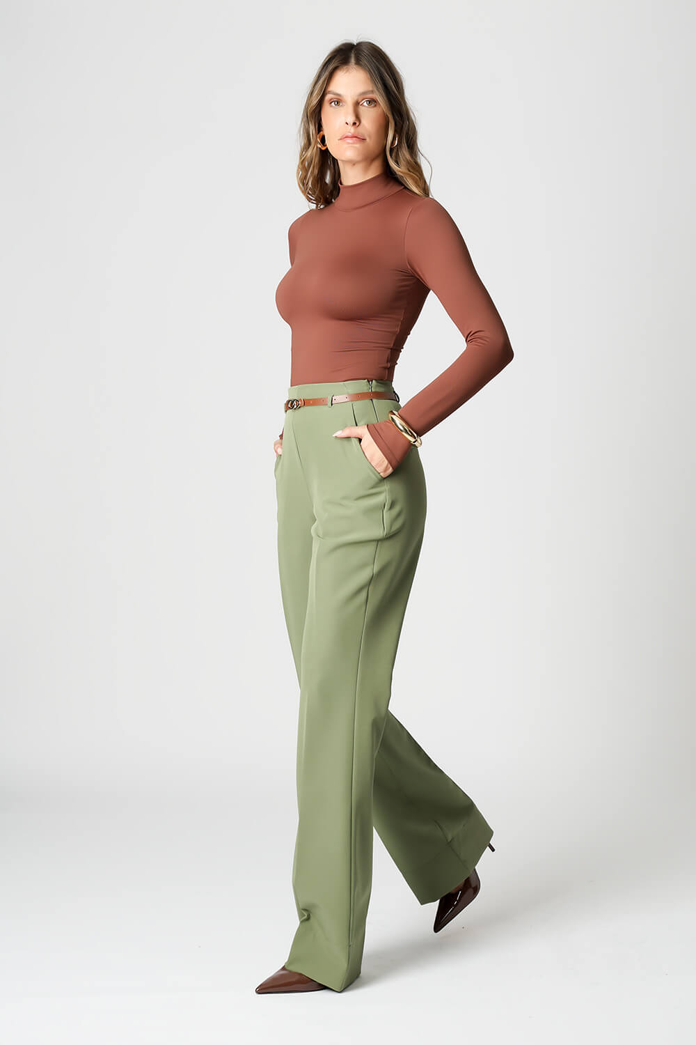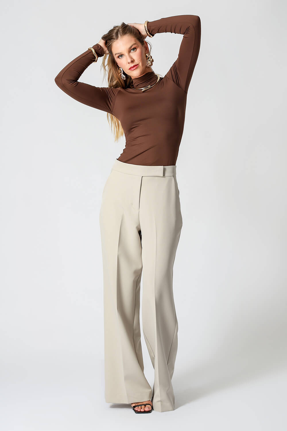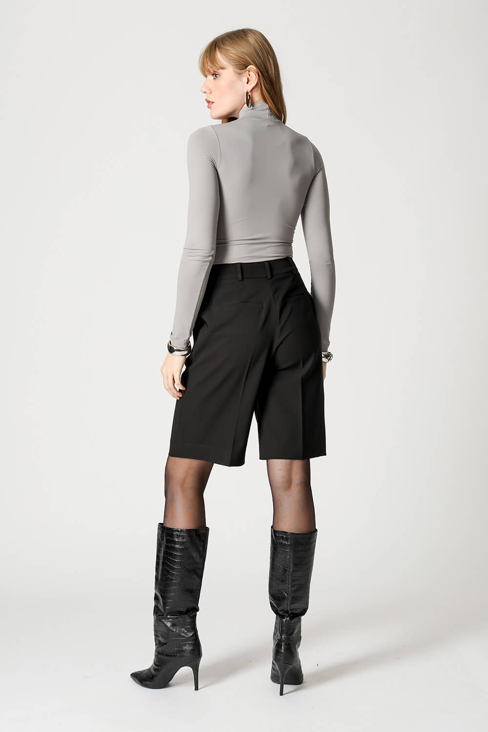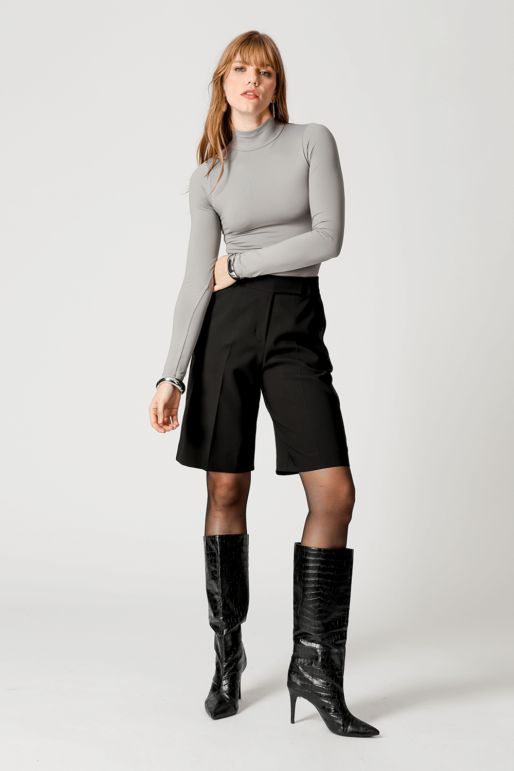 Blusa básica em shape que modela o corpo, manga longa e gola alta. Peça ideal para trabalhar looks com sobreposições. Peça confeccionada em malha de Amni.