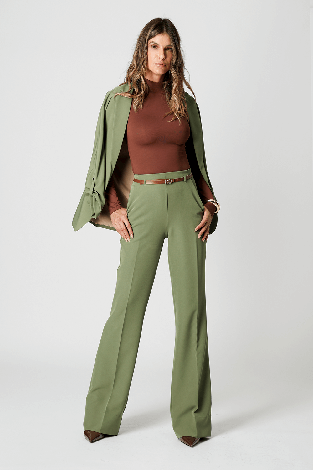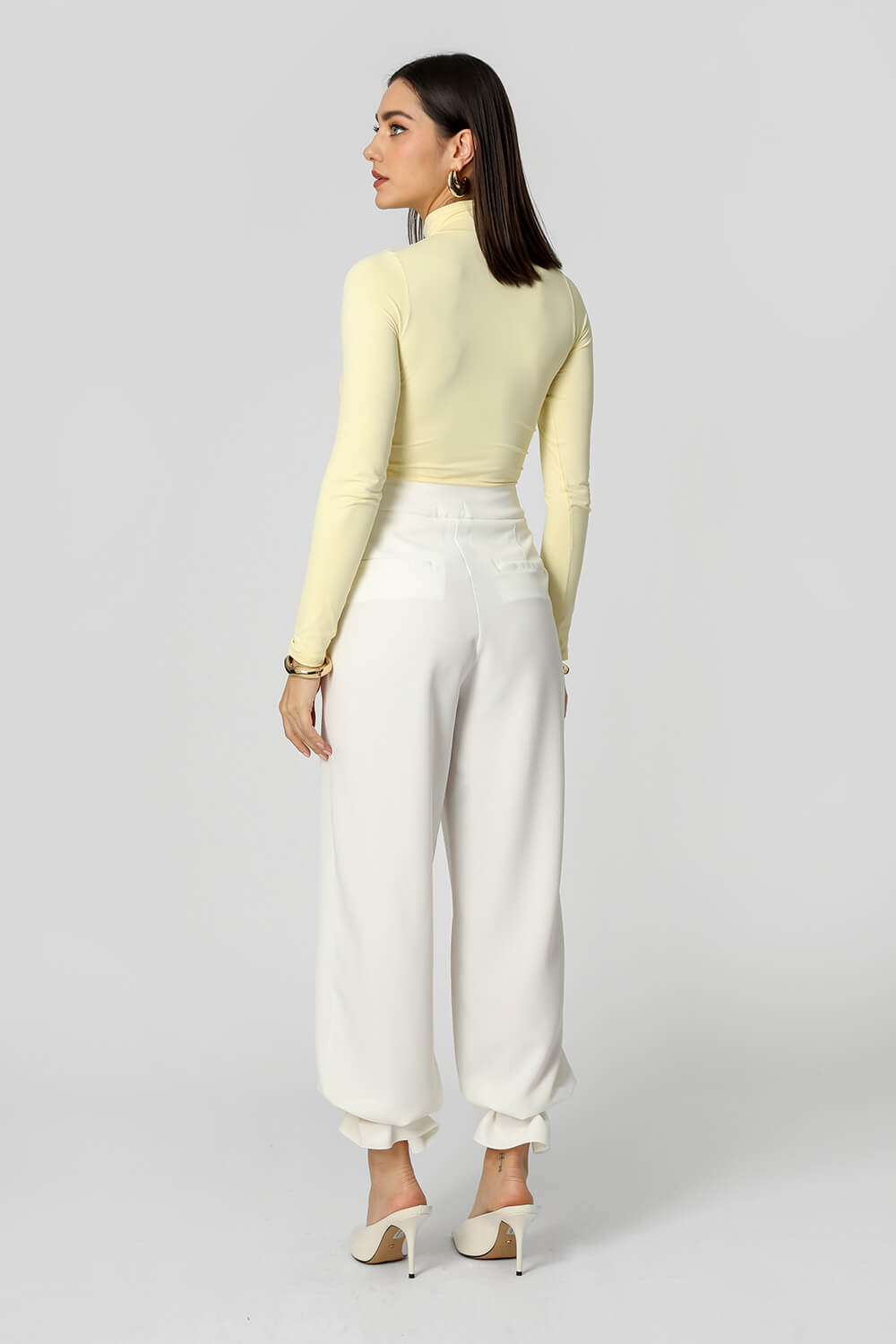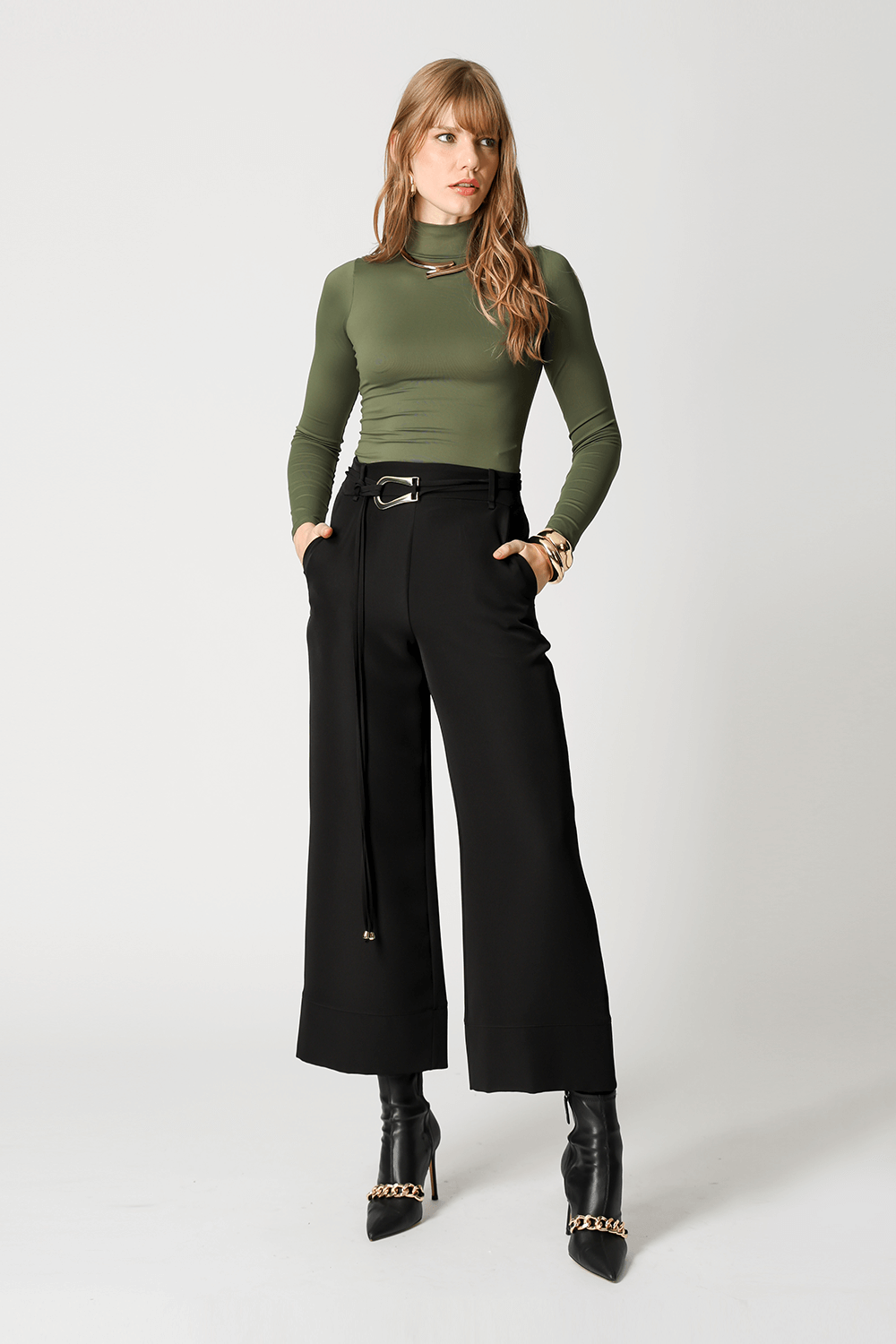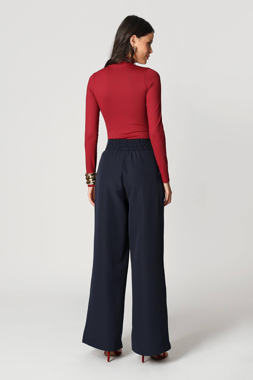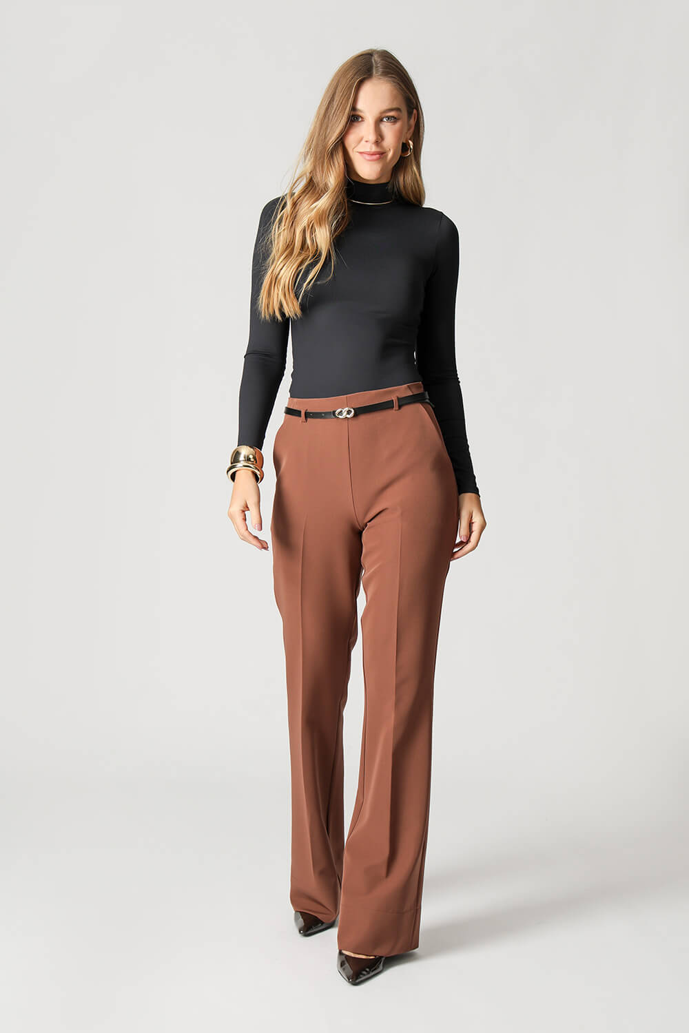 Blusa básica em shape que modela o corpo, manga longa e gola alta. Peça ideal para trabalhar looks com sobreposições. Peça confeccionada em malha de Amni.