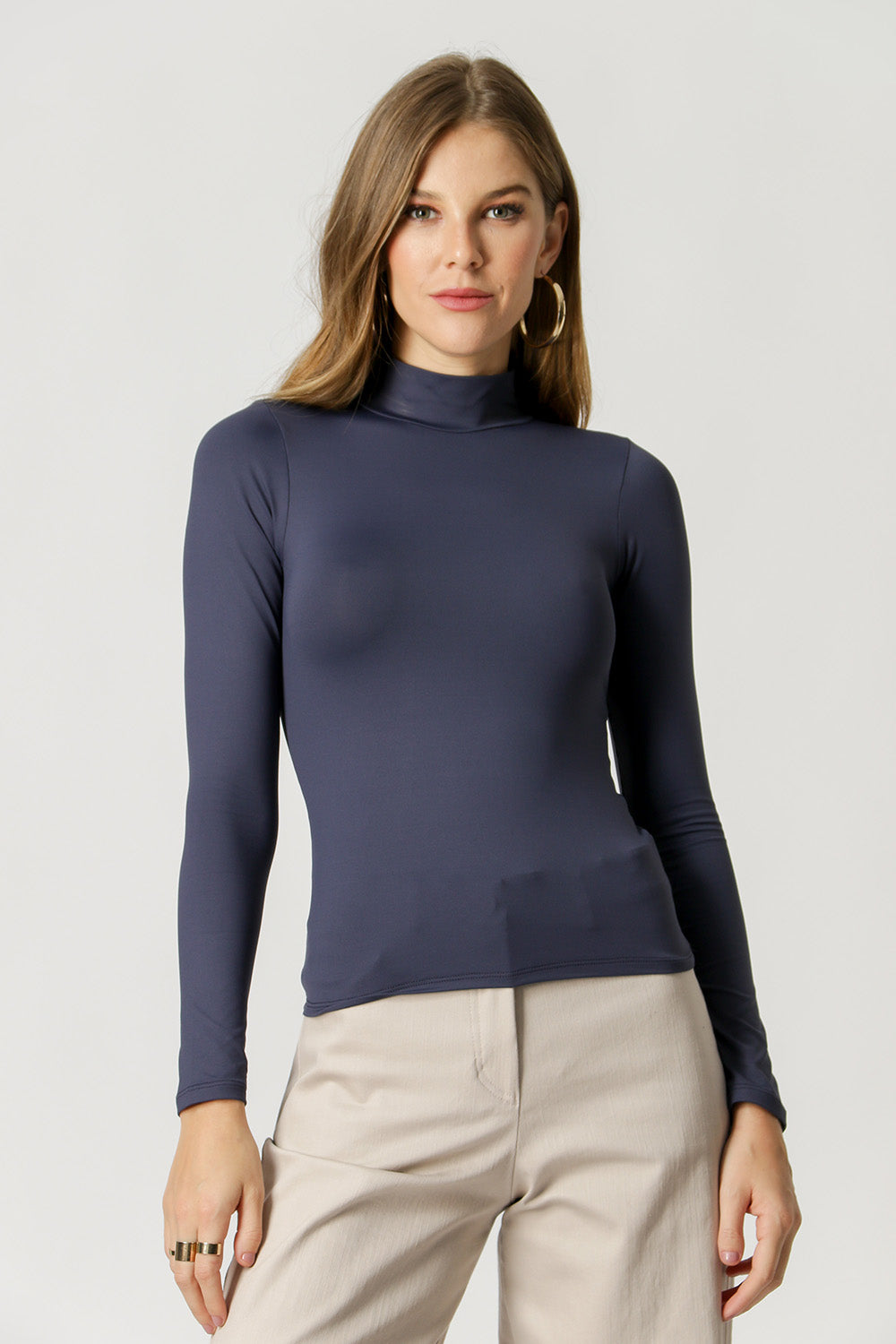 Blusa básica em shape que modela o corpo, manga longa e gola alta. Peça ideal para trabalhar looks com sobreposições. Peça confeccionada em malha de Amni.