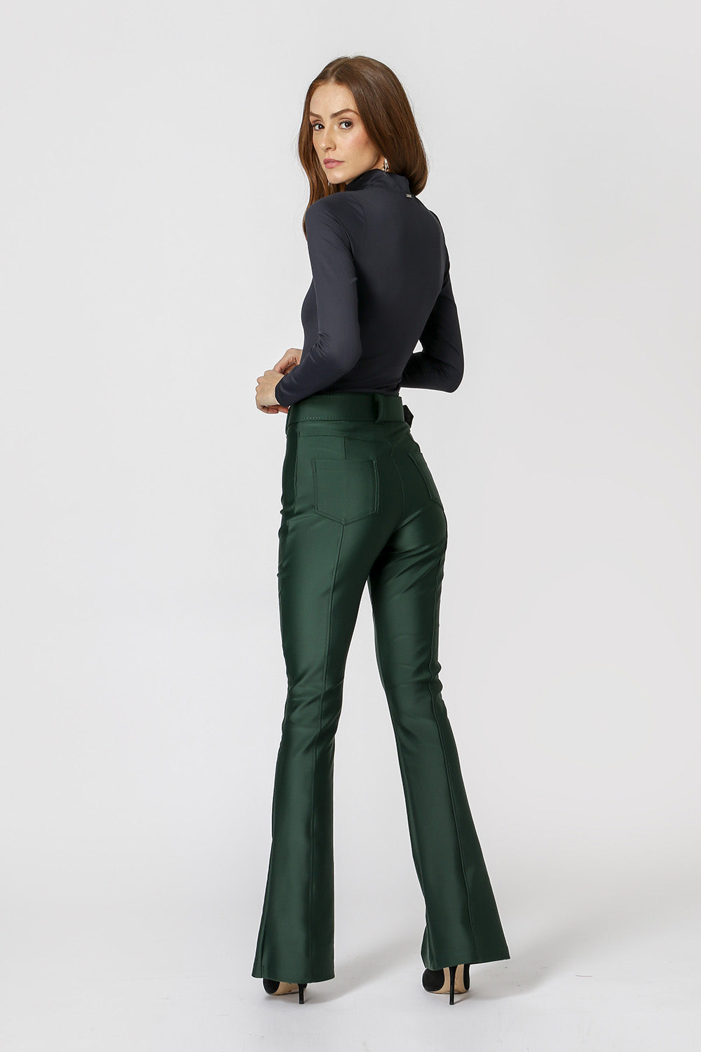 Blusa básica em shape que modela o corpo, manga longa e gola alta. Peça ideal para trabalhar looks com sobreposições. Peça confeccionada em malha de Amni.