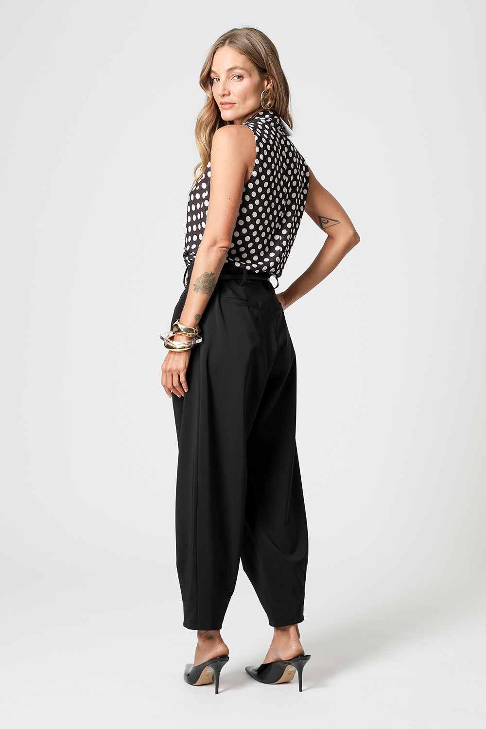 Blusa estilo cachequer com blusado na barra, confeccionada em crepe fluido leve e elegante. Ideal para looks sofisticados com conforto.