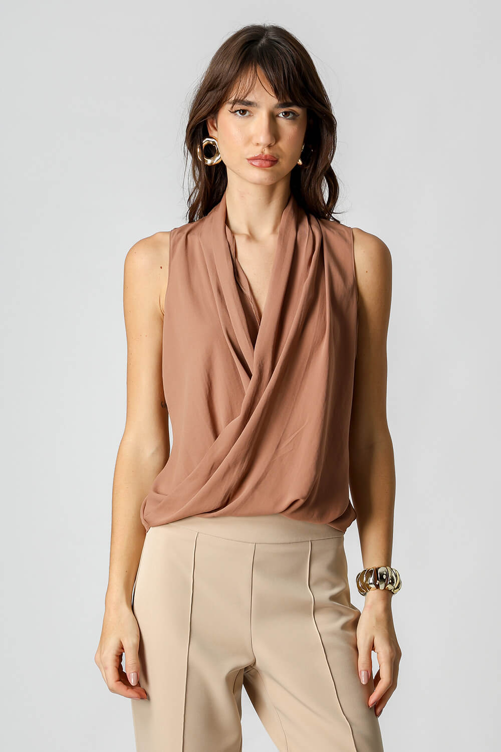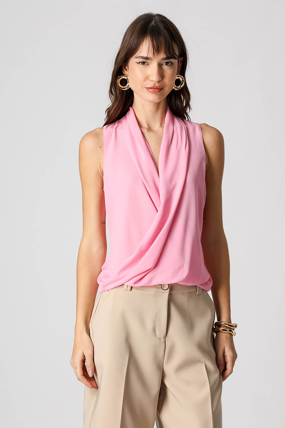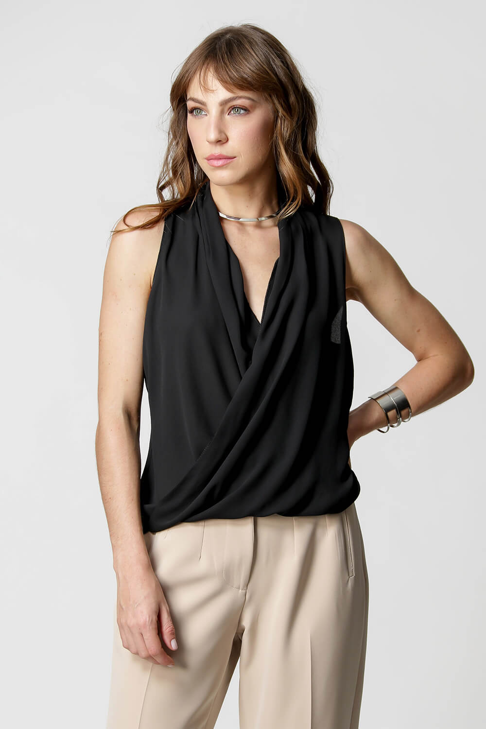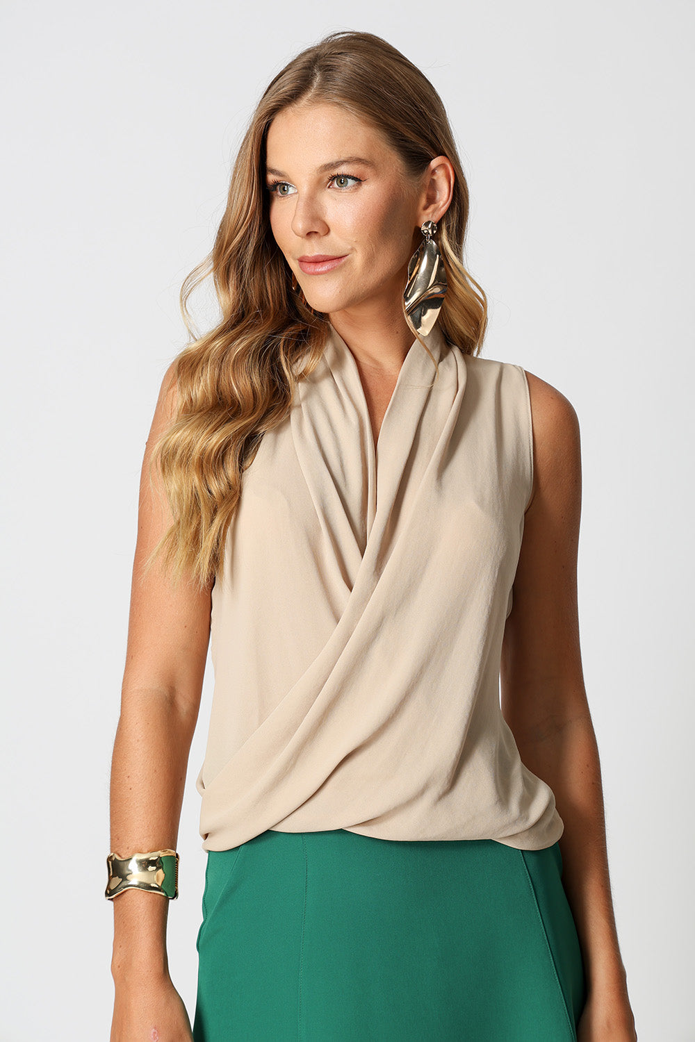 Blusa cachequer com manga curta. Modelo confeccionado em tecido crepe fluído. Um modelo elegante e cheio de charme para mood work.