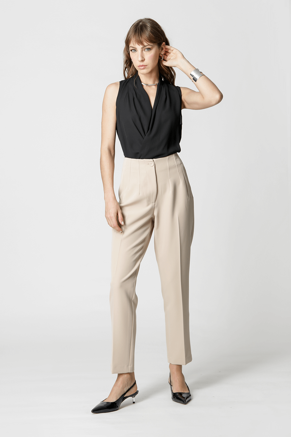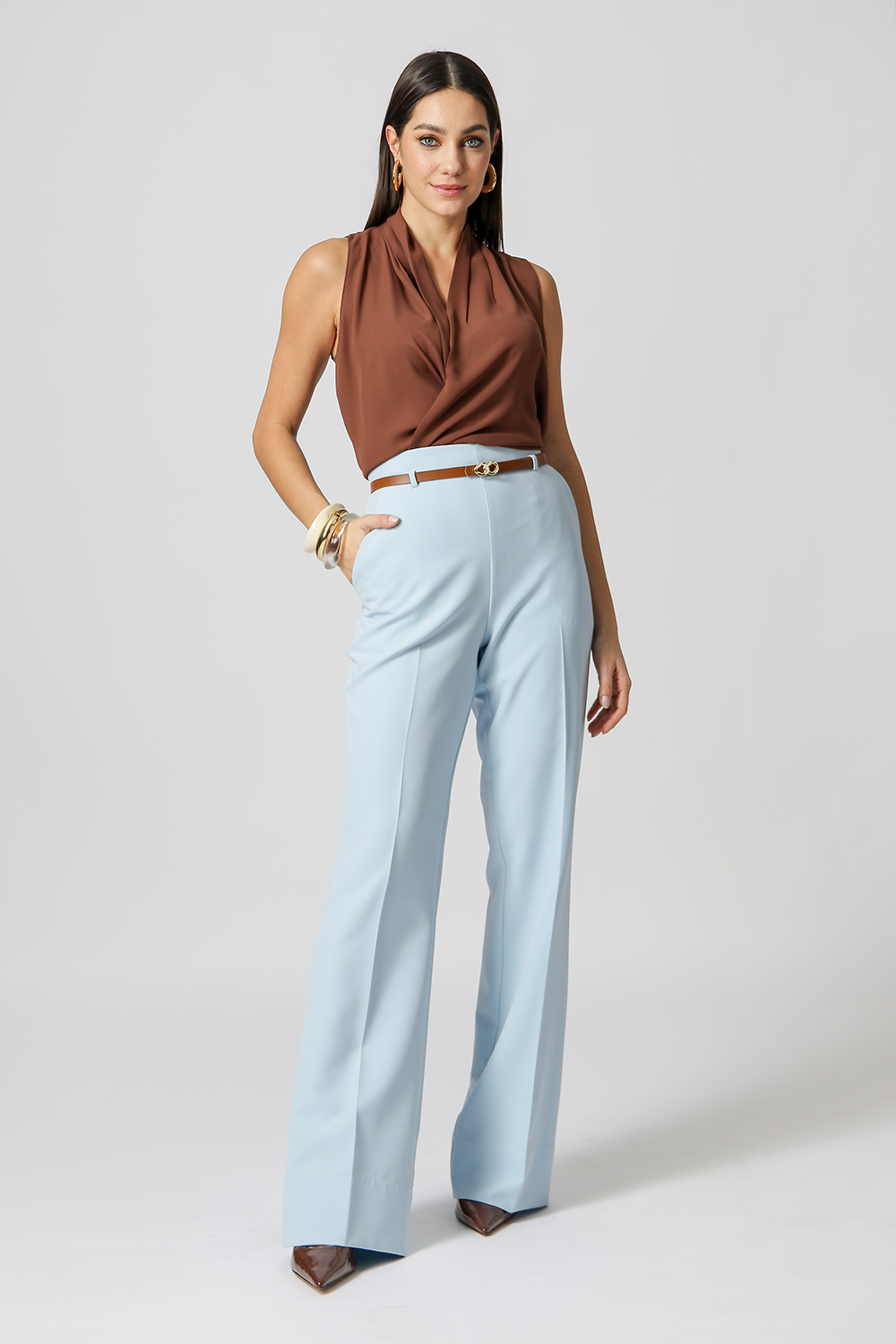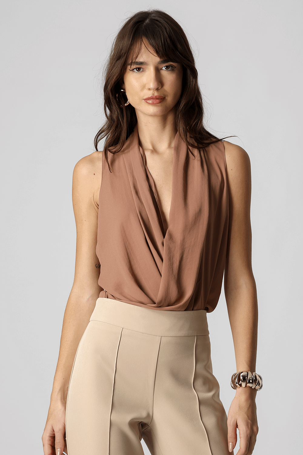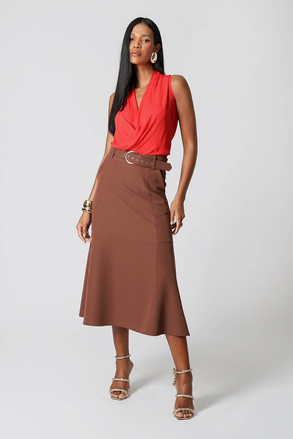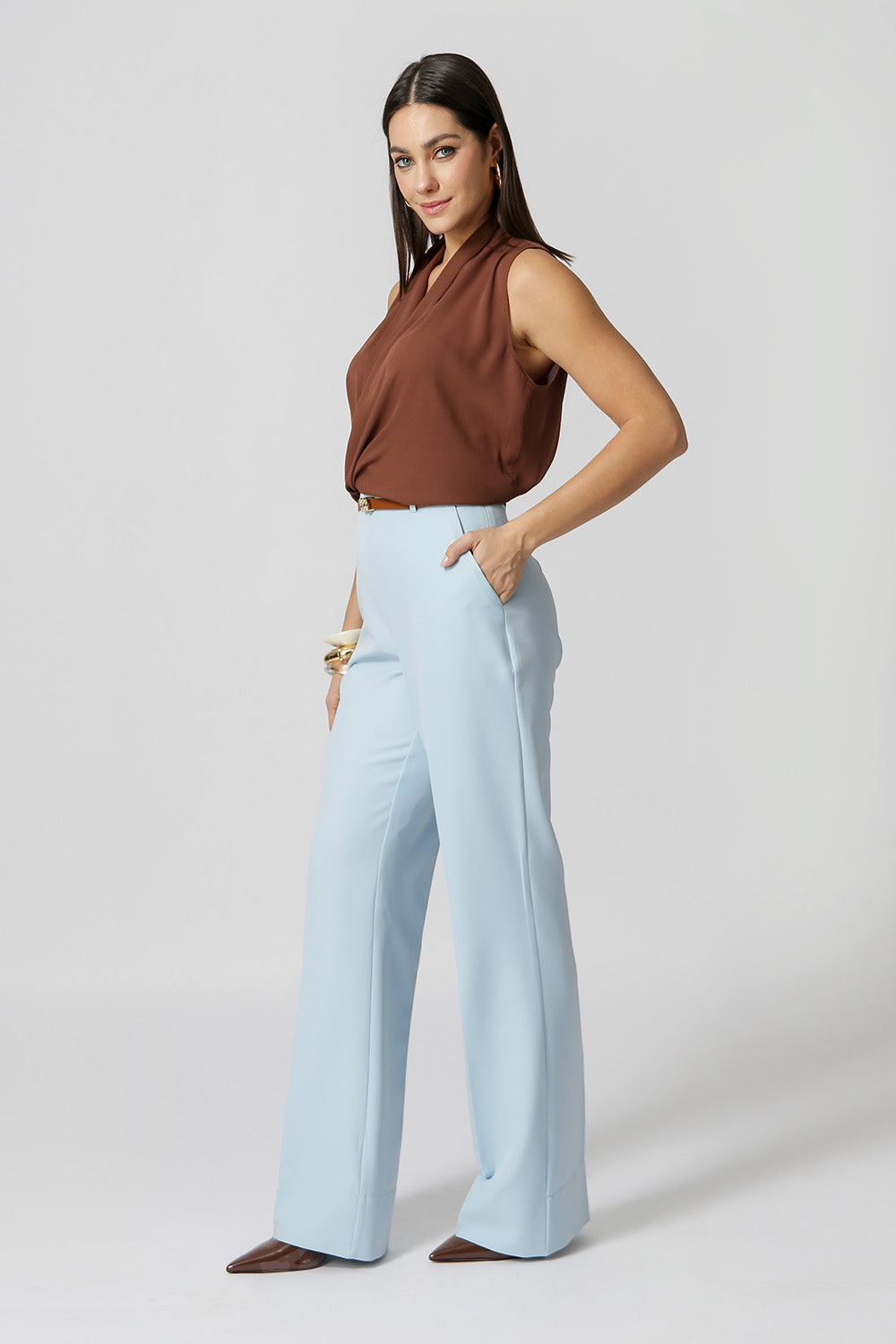 Blusa cachequer com manga curta. Modelo confeccionado em tecido crepe fluído. Um modelo elegante e cheio de charme para mood work.