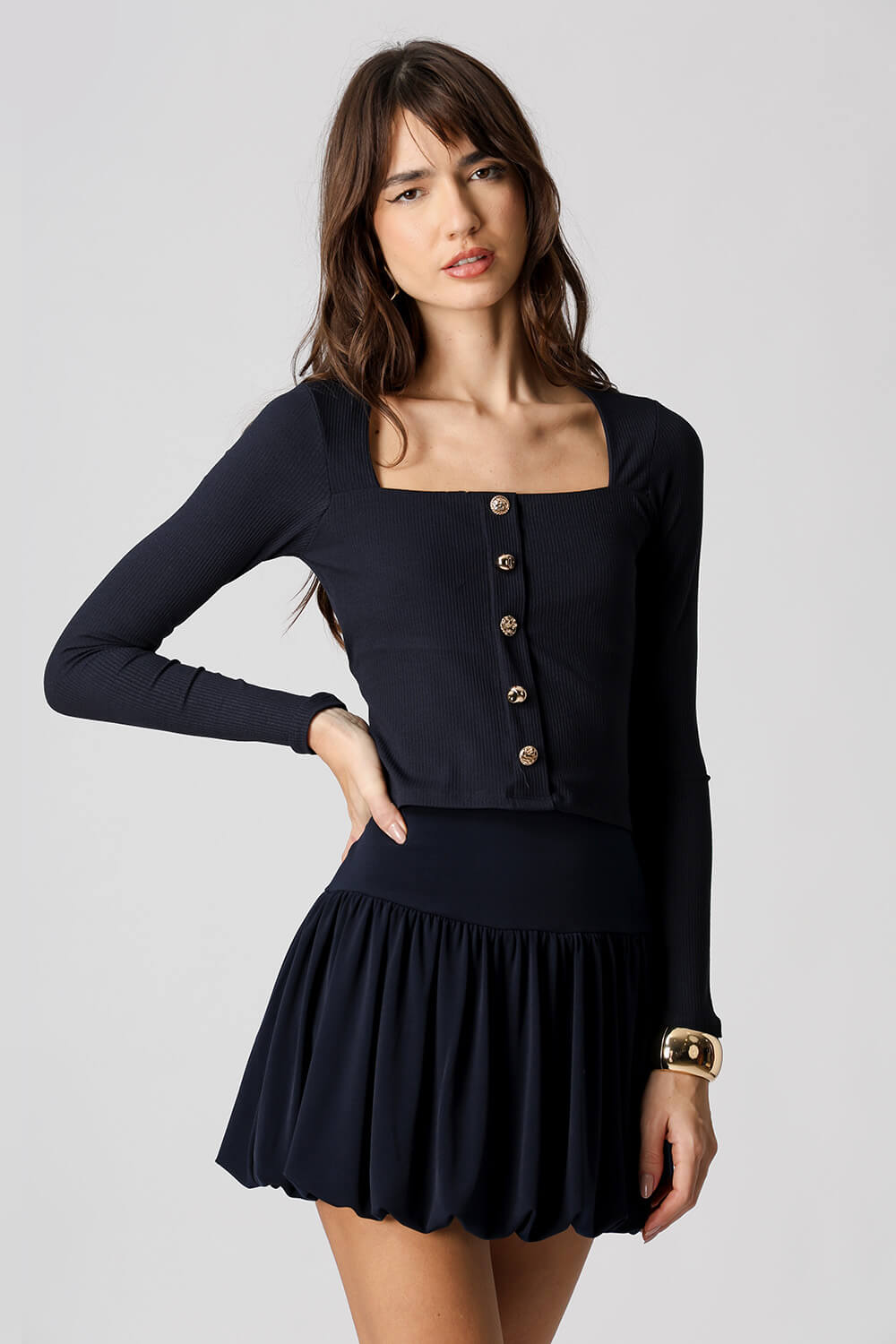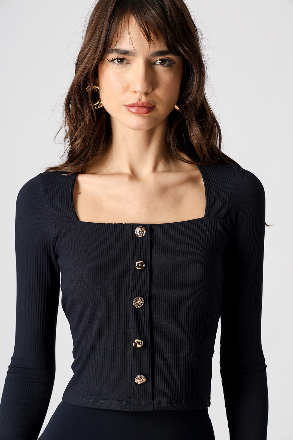 Com modelagem ajustada, essa blusa em tecido canelado slim combina conforto e estilo. A vista frontal com cinco botões diferenciados traz um toque moderno e elegante ao visual. Versátil, é perfeita para o dia a dia ou produções mais elaboradas.