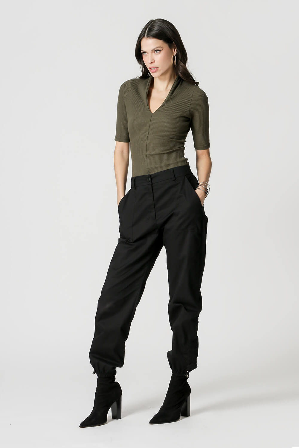 Blusa Com Decote Profundo. Peça feita com malha canelado heavy, por ser um tecido mais firme ajuda na compressão para valorizar a silhueta. Modelo básico que não pode faltar em seu guarda-roupas.