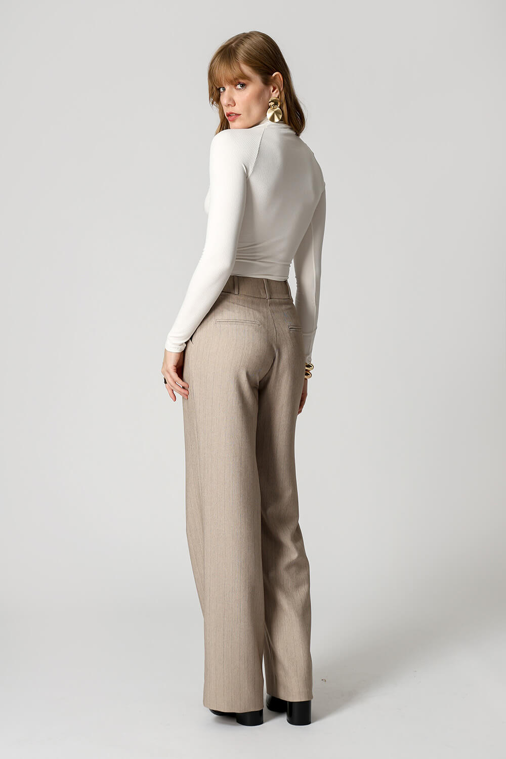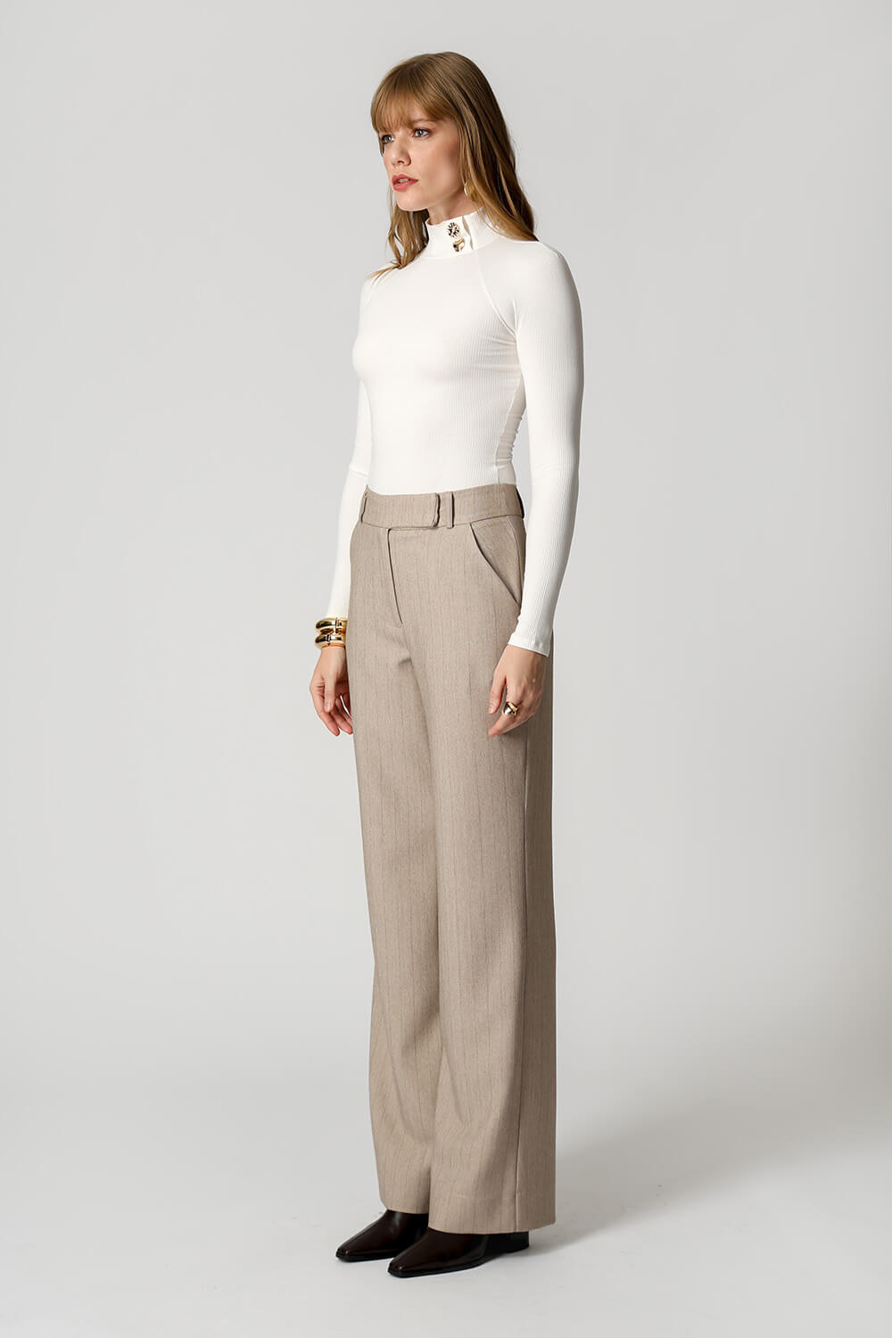 • Blusa Canelada Slim Com Gola Alta e Botões - OFF WHITE