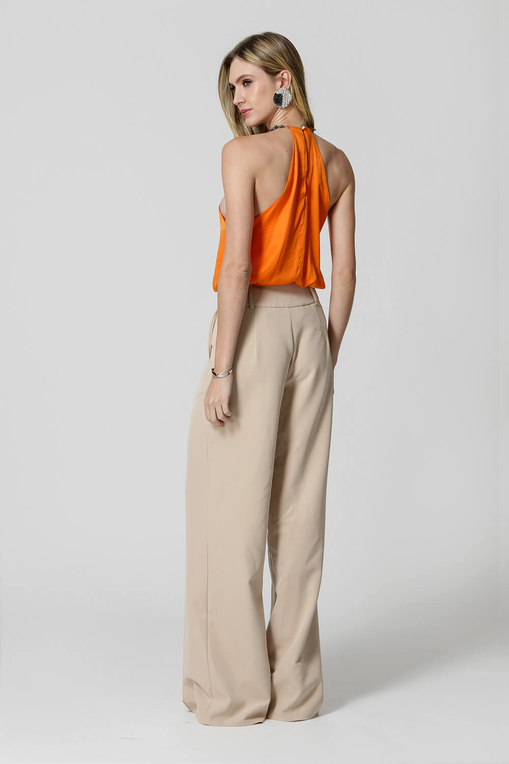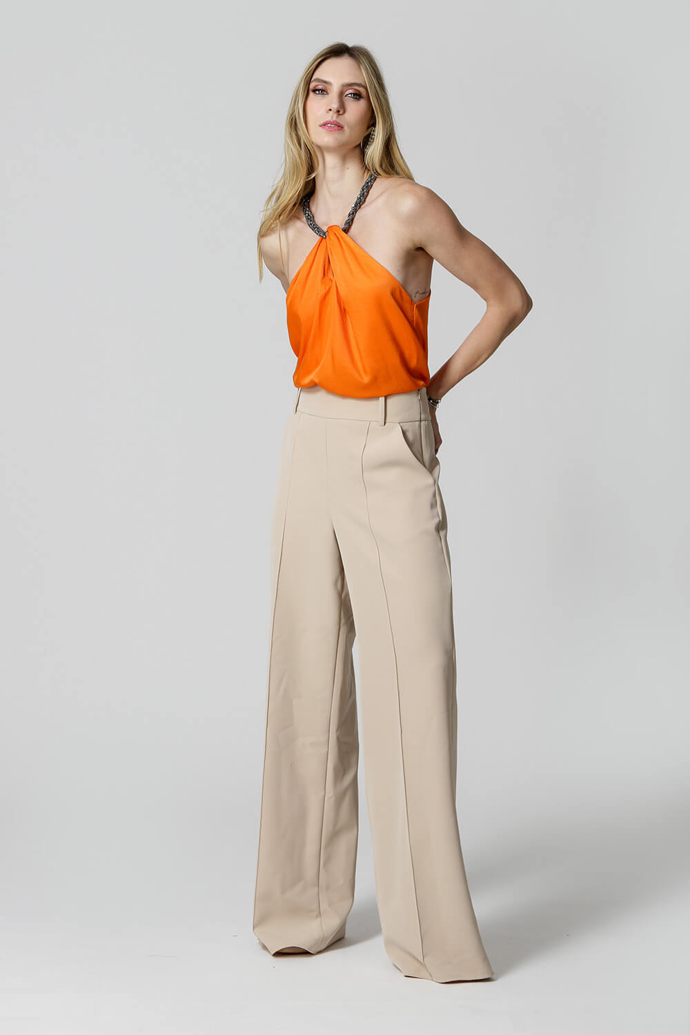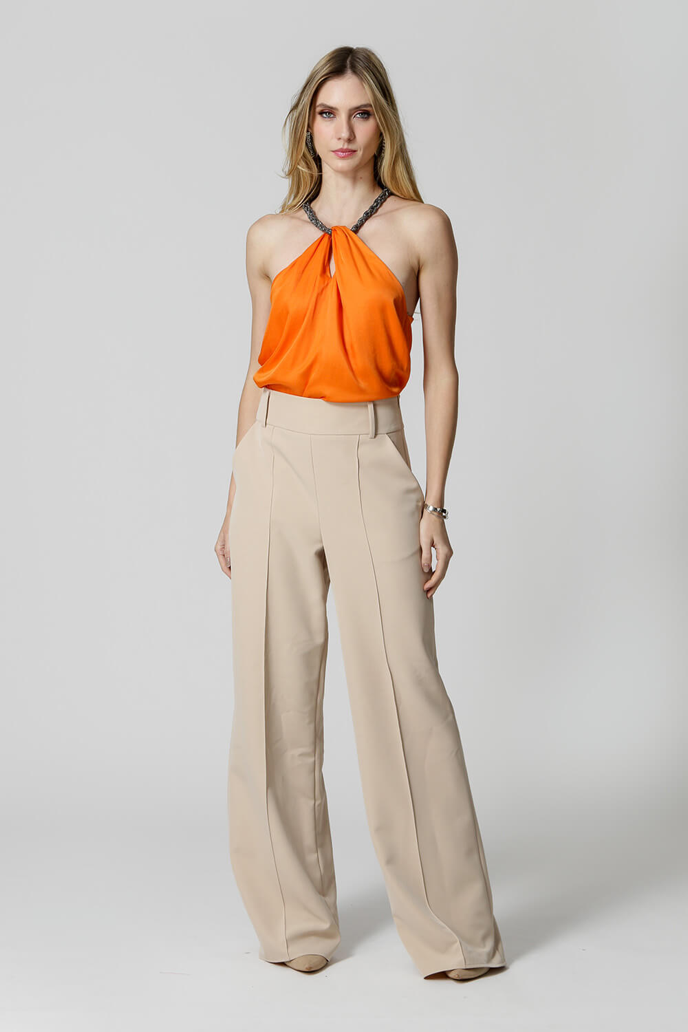 • Blusa Cetim Com Colar De Strass - LARANJA