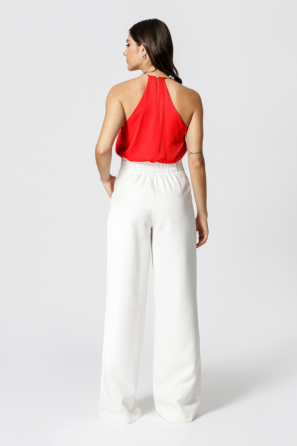 Blusa com detalhe de colar de strass na gola. Peça confeccionada em tecido de Cetim. Um modelo delicado, elegante e perfeito para ocasião Night.