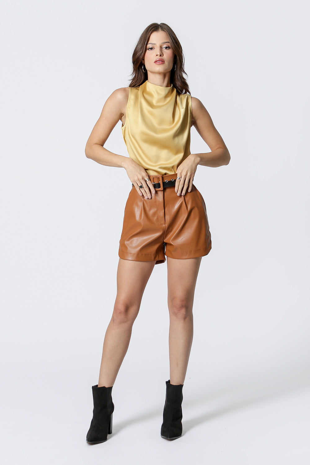 Blusa Cetim Com Gola Degagê - MOSTARDA