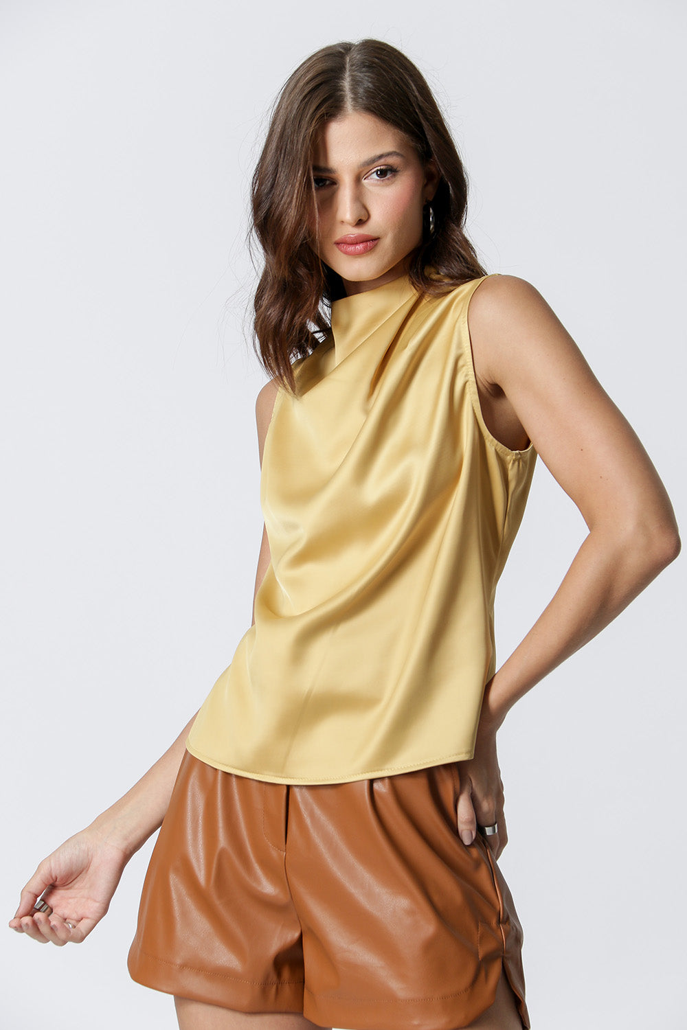 • Blusa Cetim Com Gola Degagê - MOSTARDA