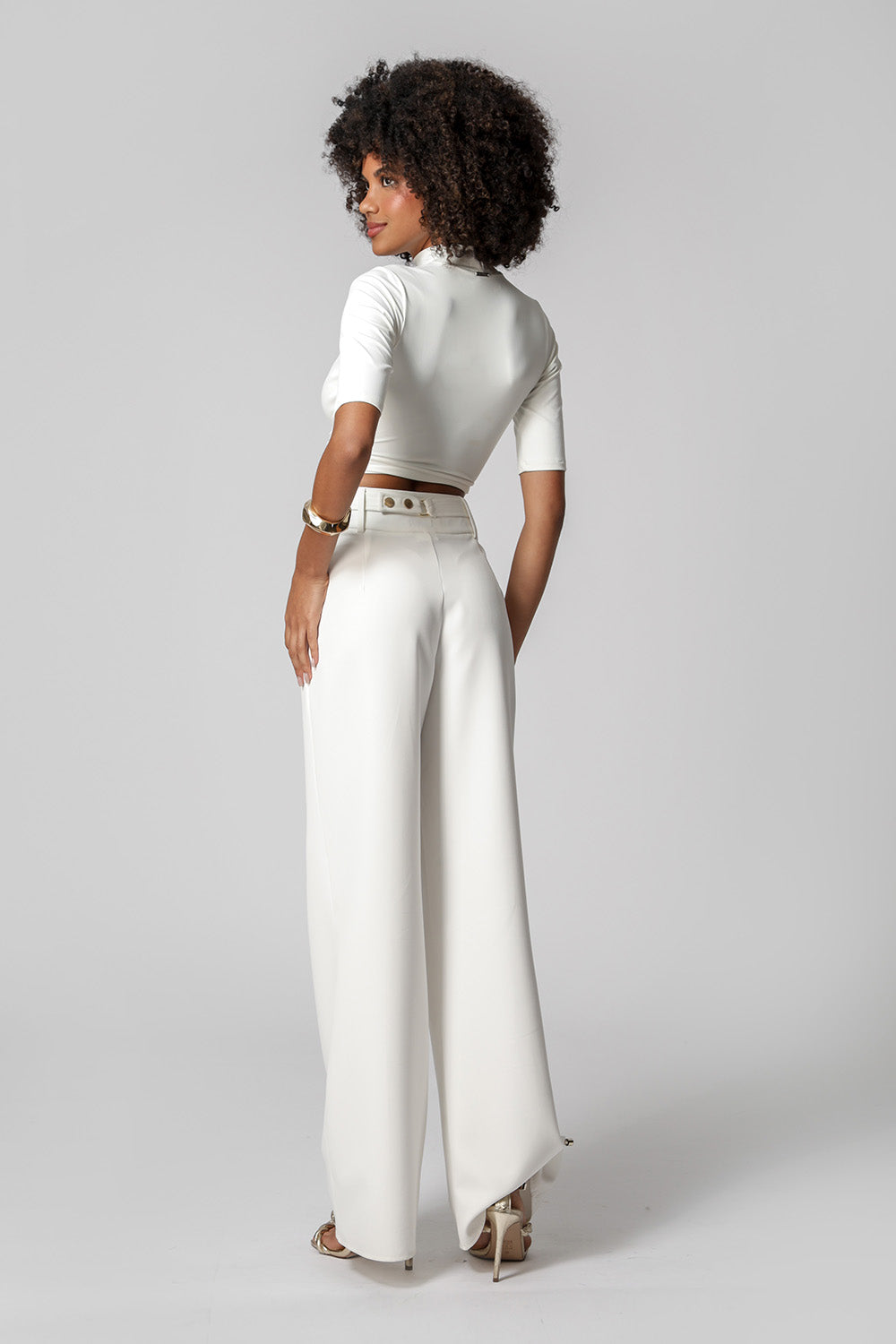 Blusa confeccionada em malha Amni, com decote transpassado e gola estilo chocker. Peça indispensável para arrasar no verão.