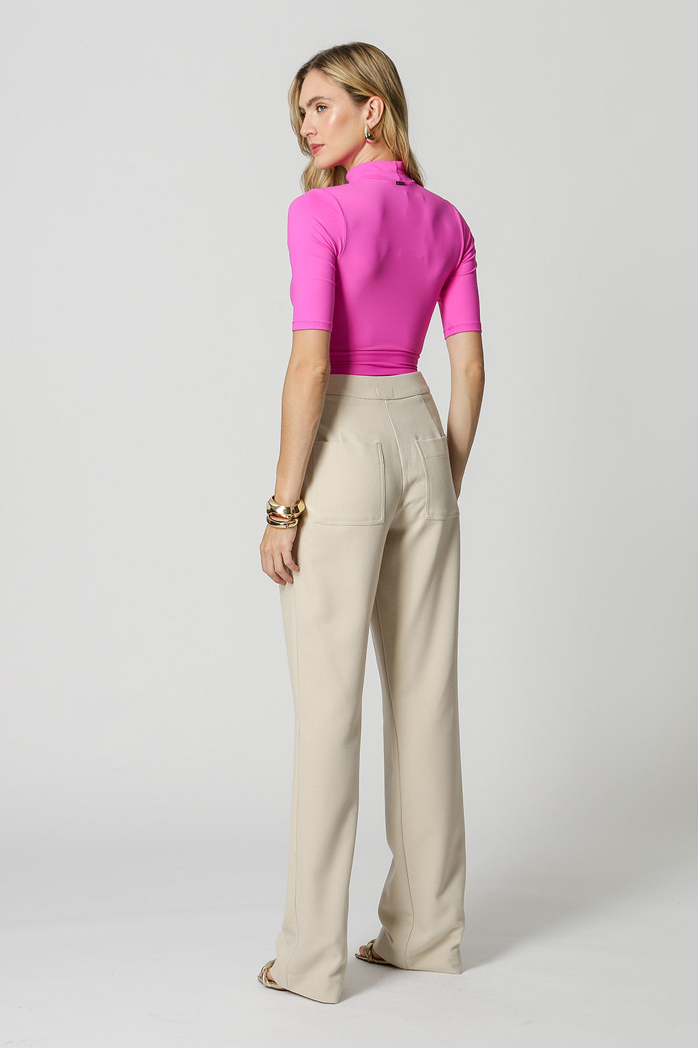 Blusa confeccionada em malha Amni, com decote transpassado e gola estilo chocker. Peça indispensável para arrasar no verão.