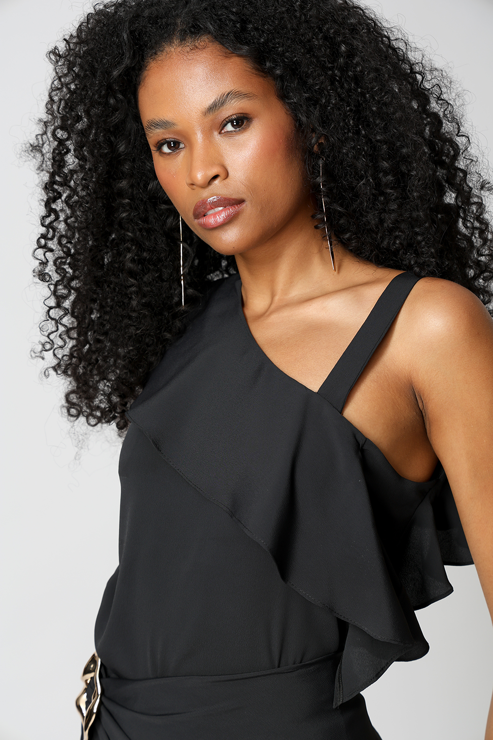 • Blusa Com Babado e Alça Removível - PRETO