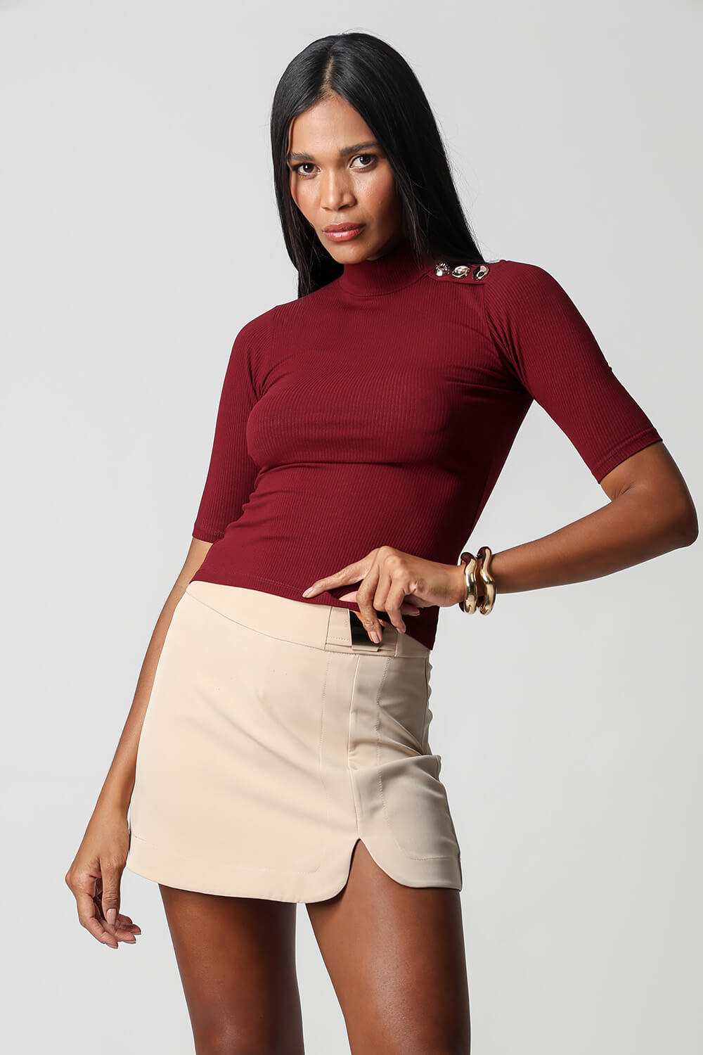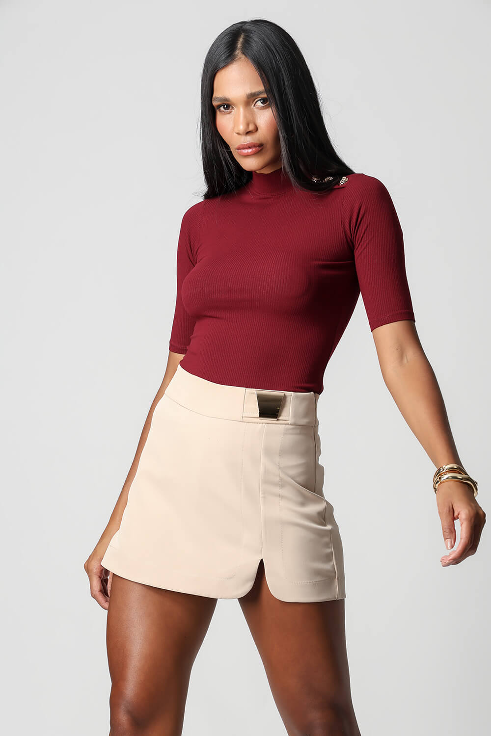 Blusa Manga Midi com um toque de sofisticação, confeccionada em tecido canelado slim. A escolha perfeita para quem busca conforto e estilo em uma única peça.