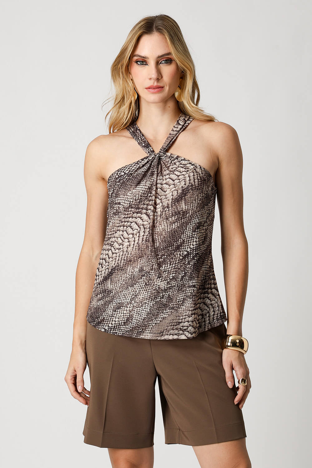 Confeccionada em tule estampado, a peça possui modelagem ajustada e busto torcido com alça central, que valoriza o decote e traz um toque moderno ao visual. Leve e versátil, é ideal para composições cheias de estilo.