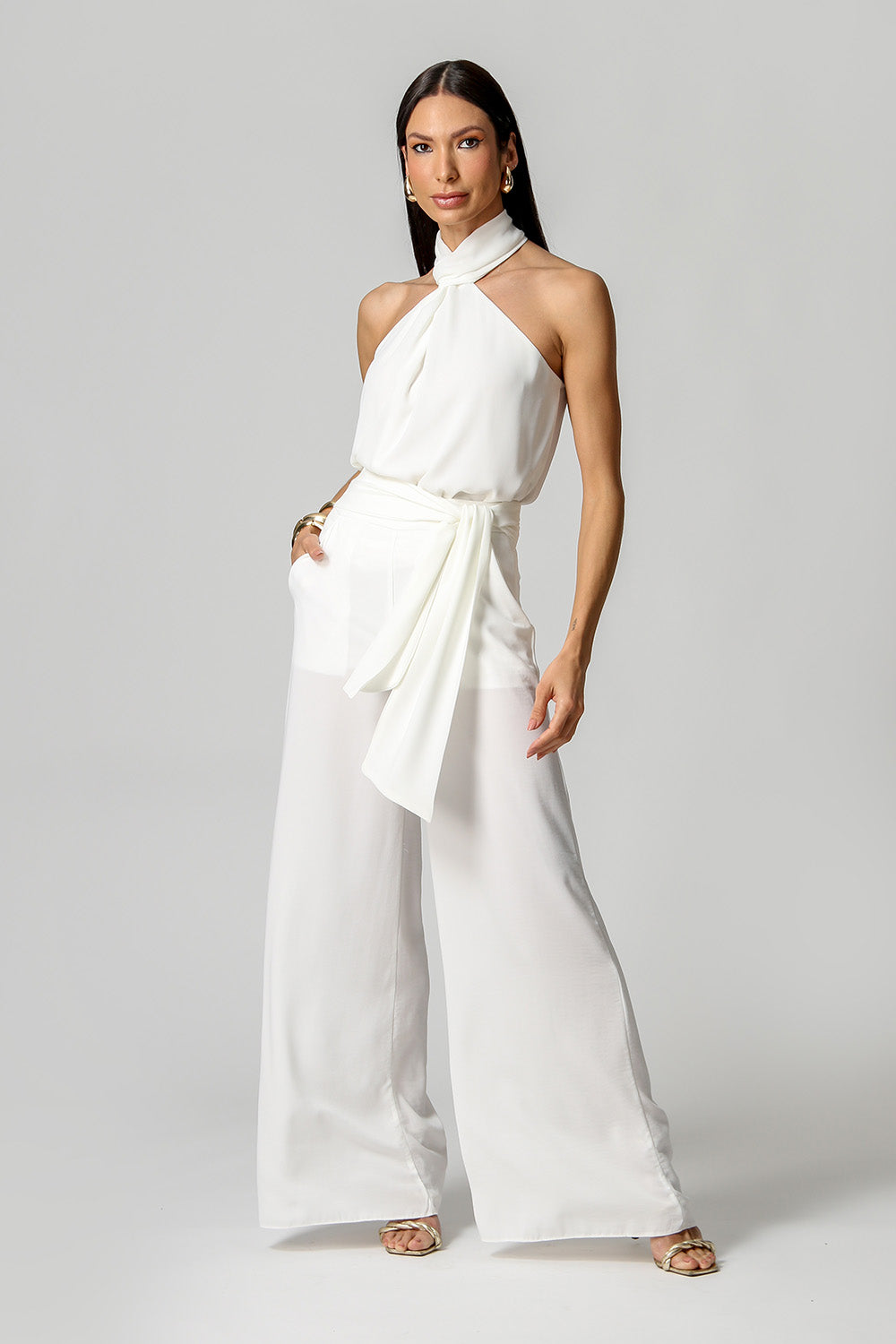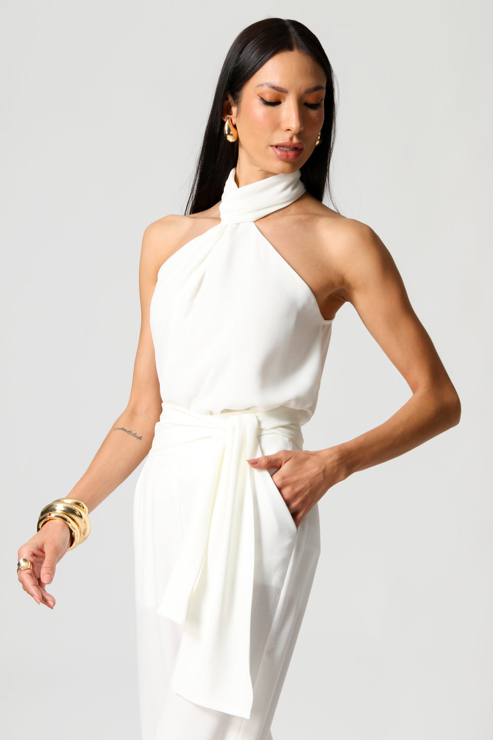Blusa Com Decote Assimétrico e faixa removível que pode ser usado de diversas formas, modelo traz elegância para um look work.