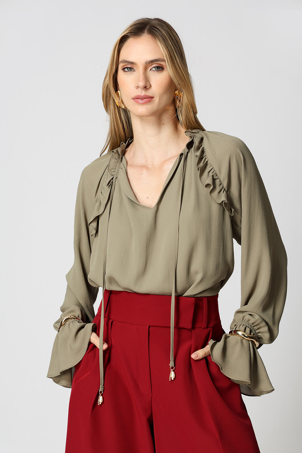 • Blusa Com Detalhe Babado - MUSGO CLARO