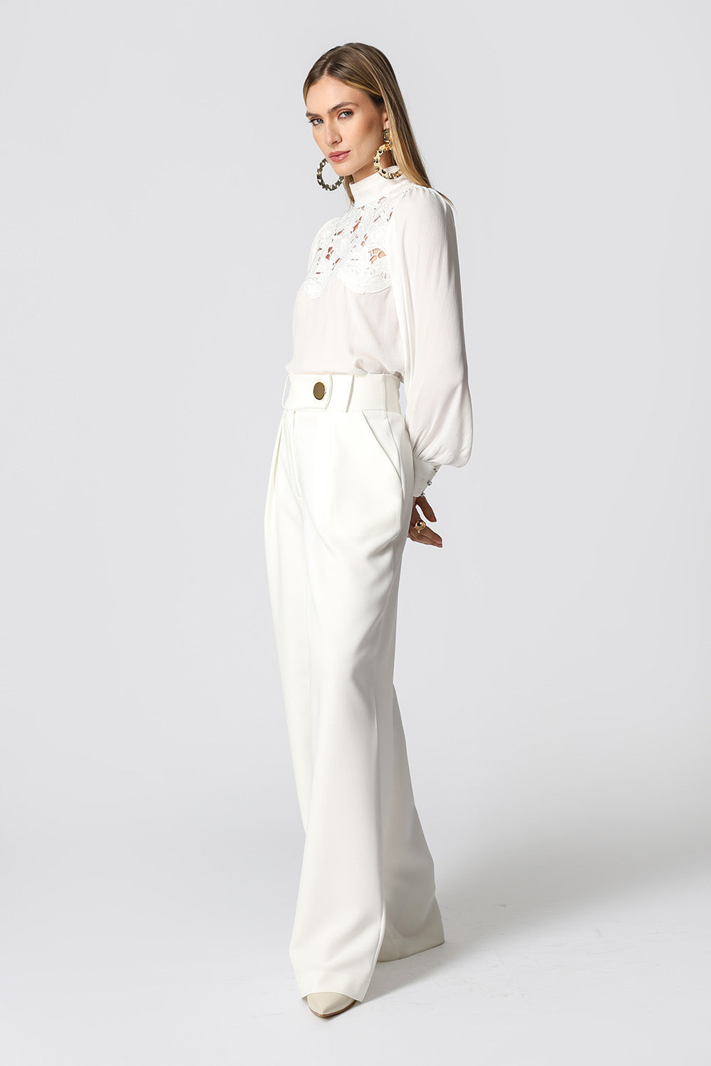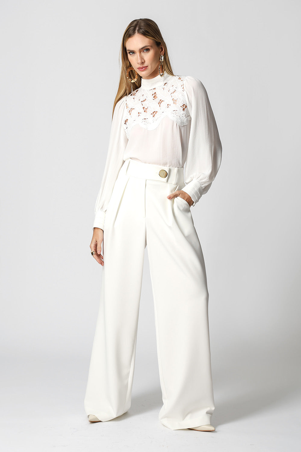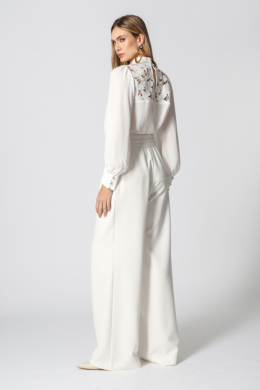 Blusa elegante e moderna, com detalhes em guippir, um delicado bordado floral que adiciona leveza e feminilidade. Perfeita para looks do dia a dia ou ocasiões especiais, combina sofisticação e conforto em uma só peça.