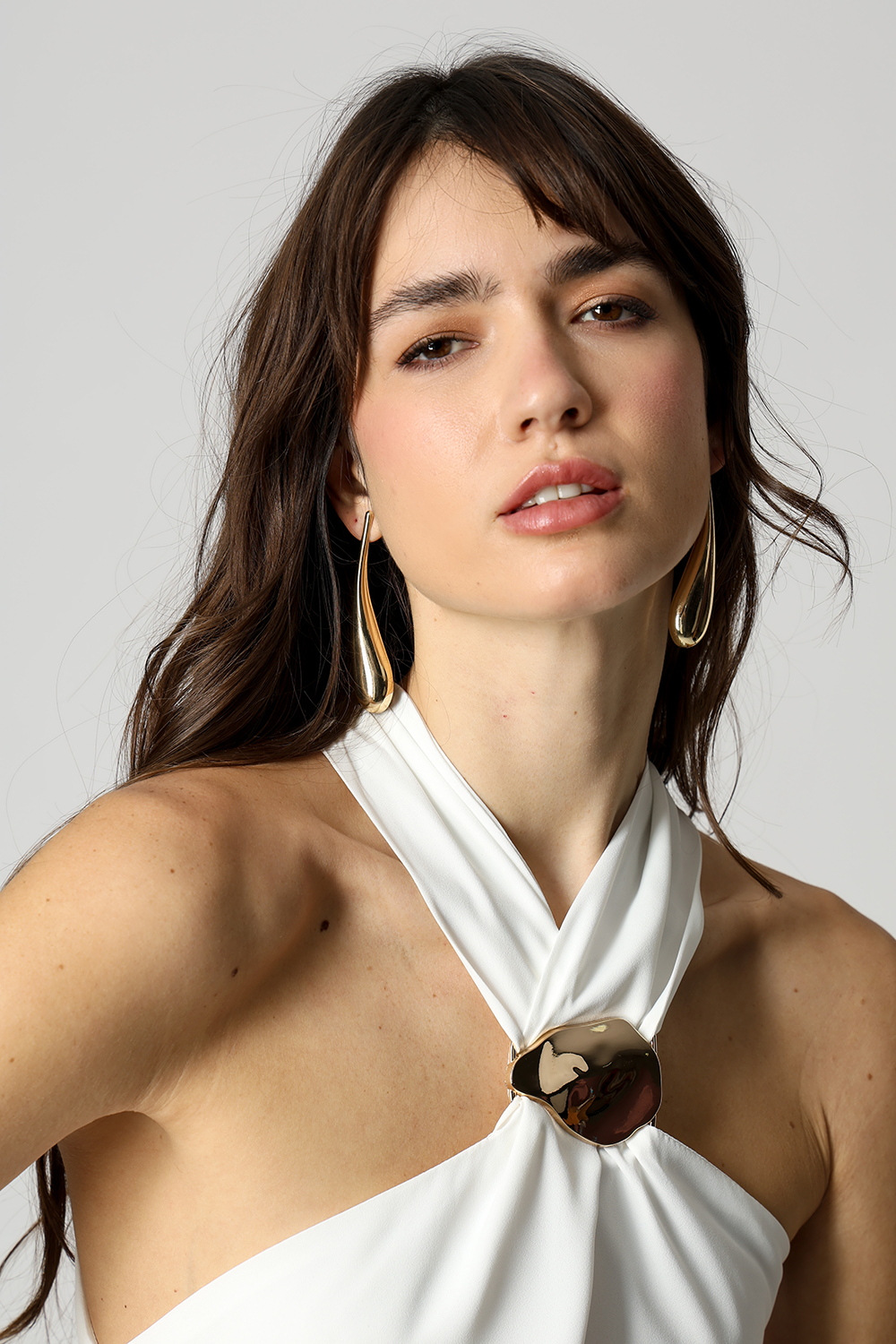 Detalhe de fivela no decote