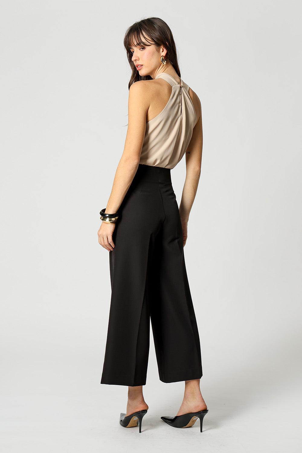 Moderna e sofisticada, essa blusa conta com detalhe de fivela no decote e alças largas que garantem conforto e estilo. Ideal para compor looks elegantes em eventos, jantares ou produções noturnas.
