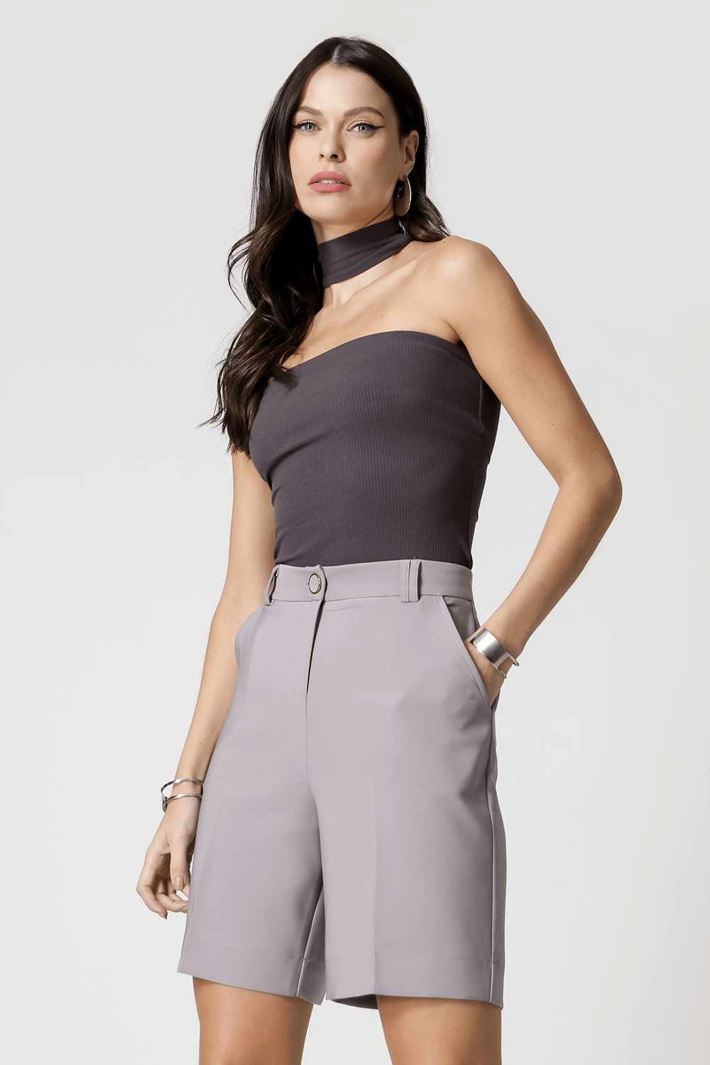 Blusa com gola. Peça confeccionada em tecido canelado Slim. Um modelo básico mais moderno e perfeito para mood Casual com estilo.