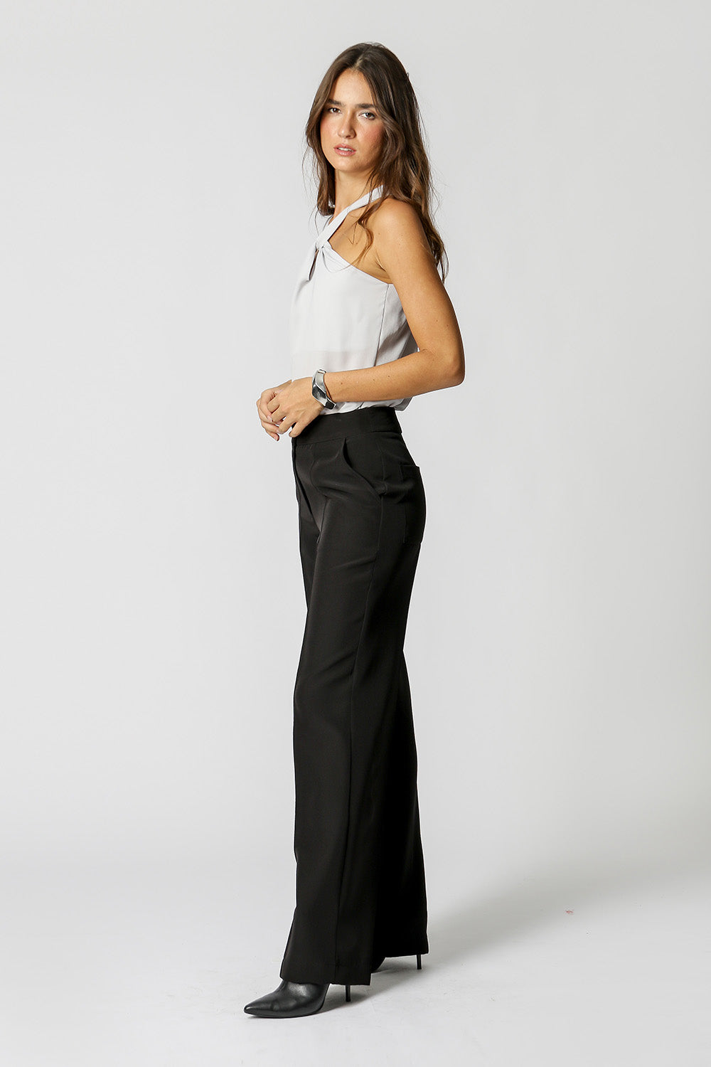 Blusa com cava americana e um charmoso transpasse no decote. Uma peça feita em crepe fluído para diversos looks.