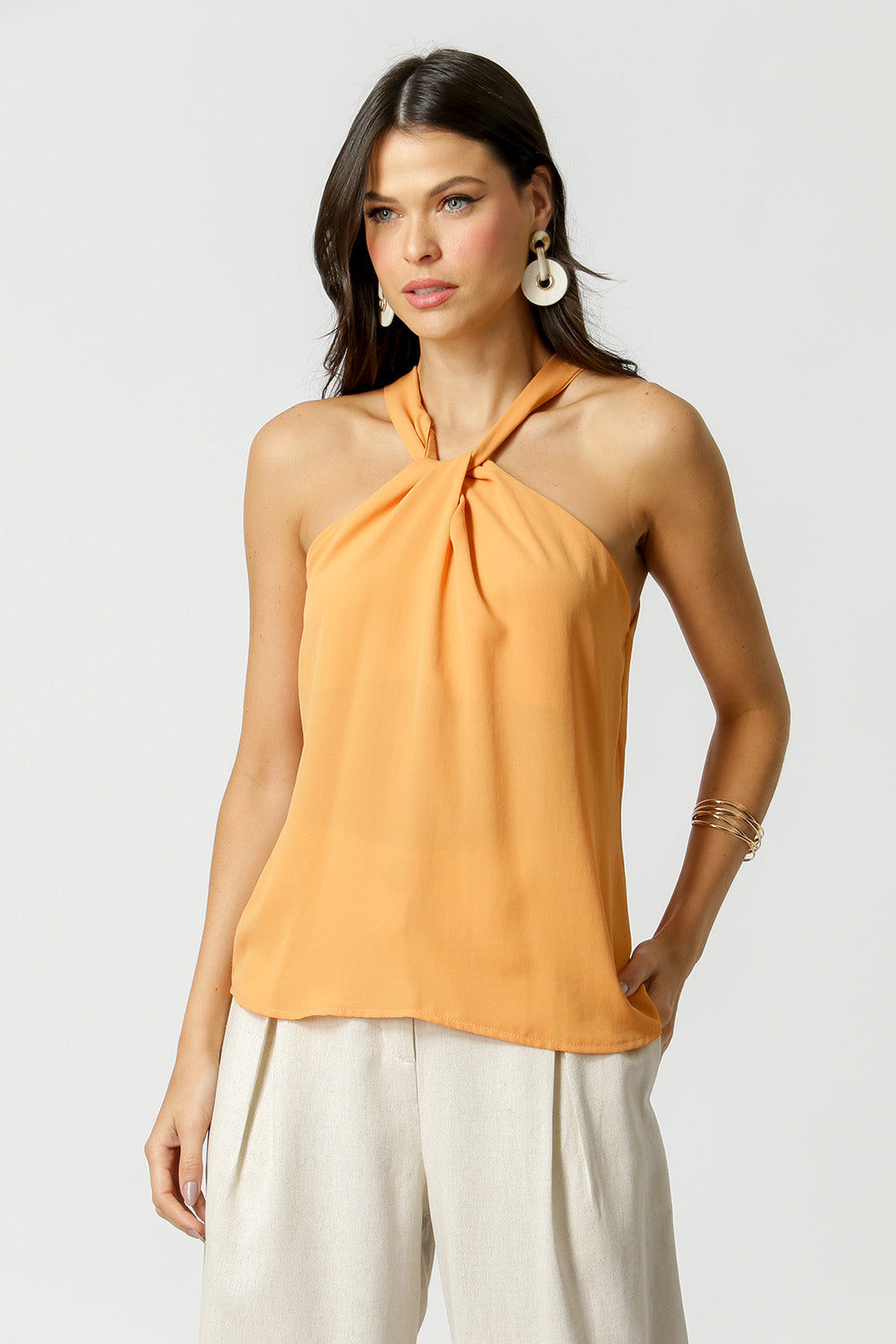 Blusa com cava americana e um charmoso transpasse no decote. Uma peça feita em crepe fluído para diversos looks.
