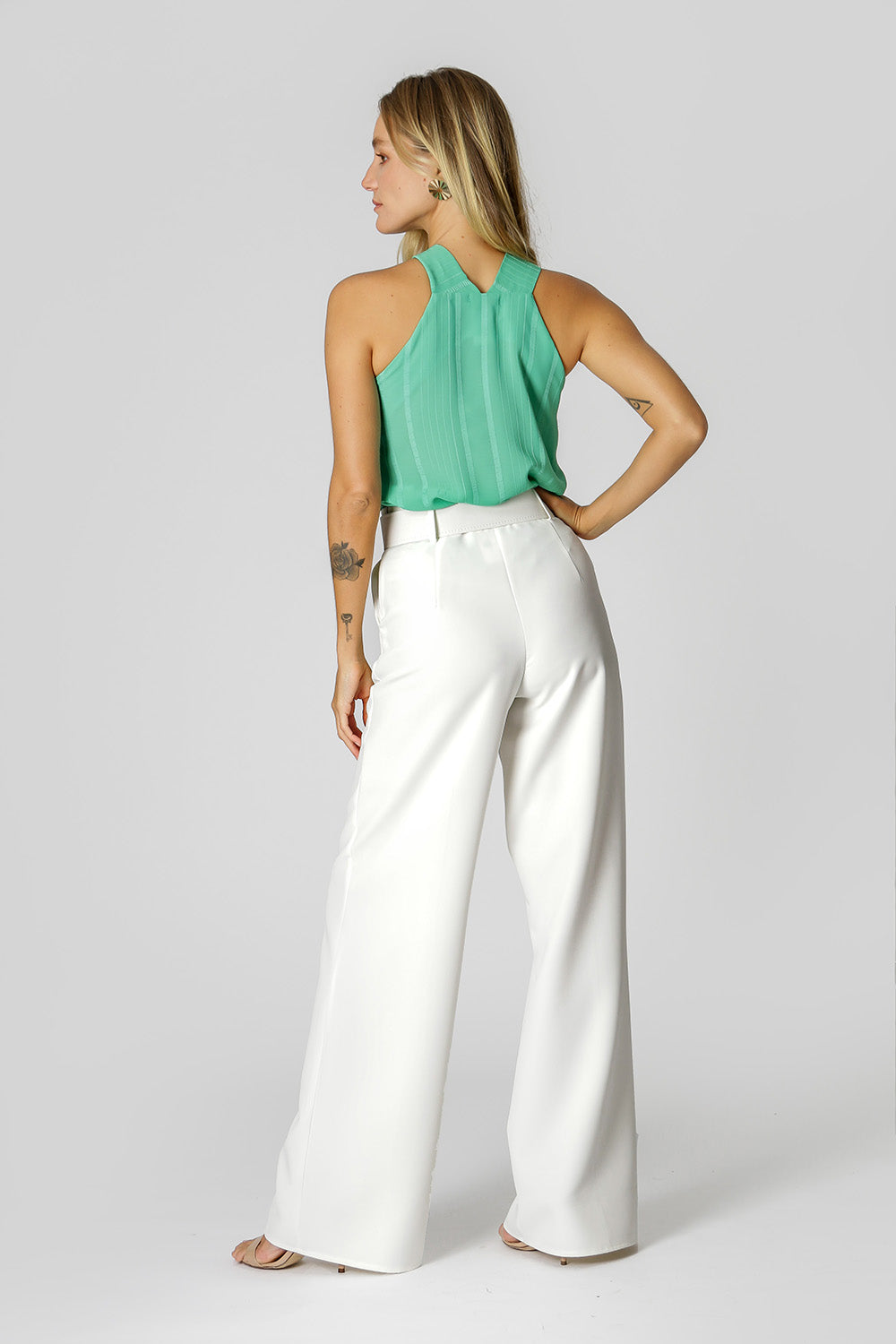 Blusa com cava americana e um charmoso transpasse no decote. Uma peça feita em chiffon fluído para diversos looks.