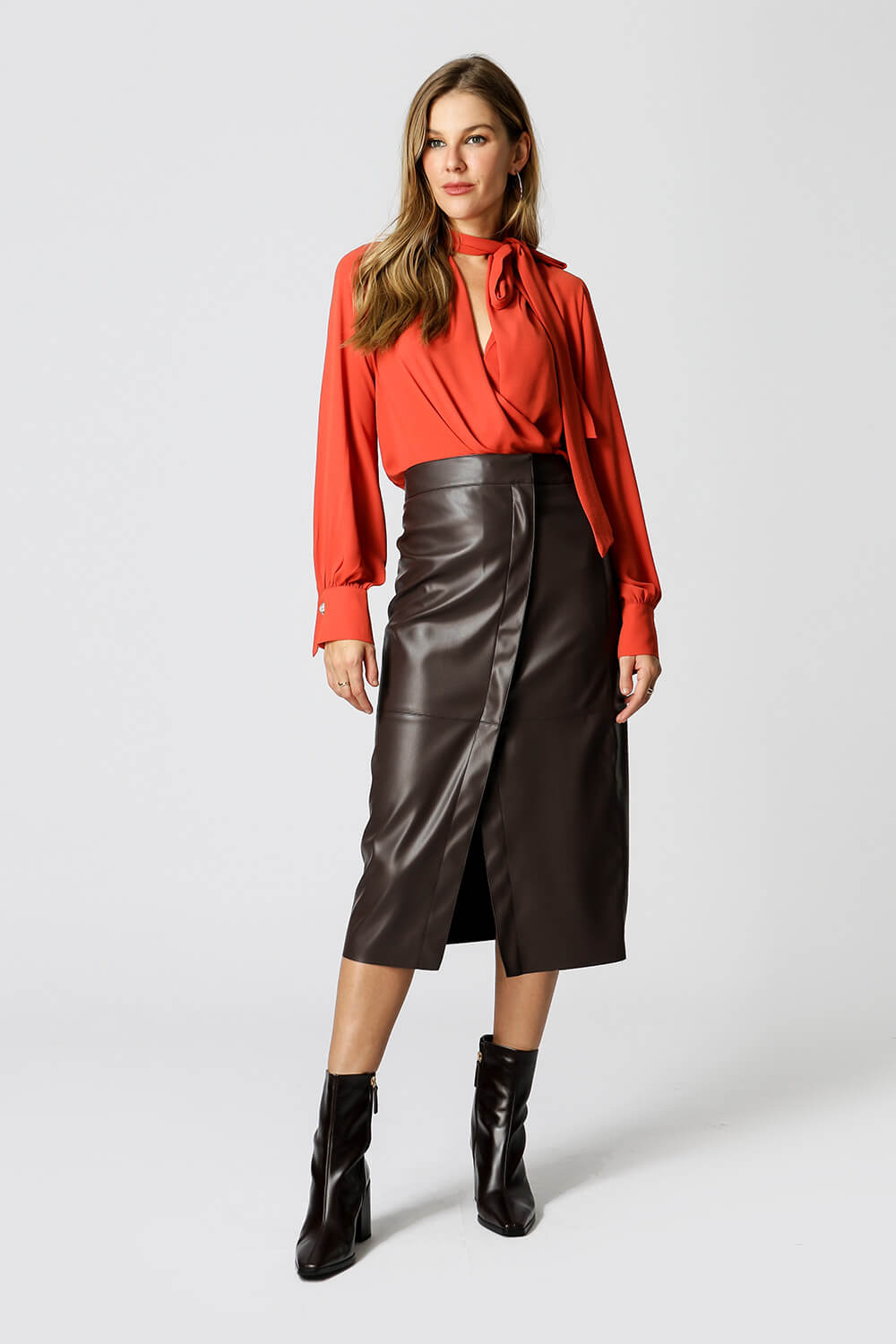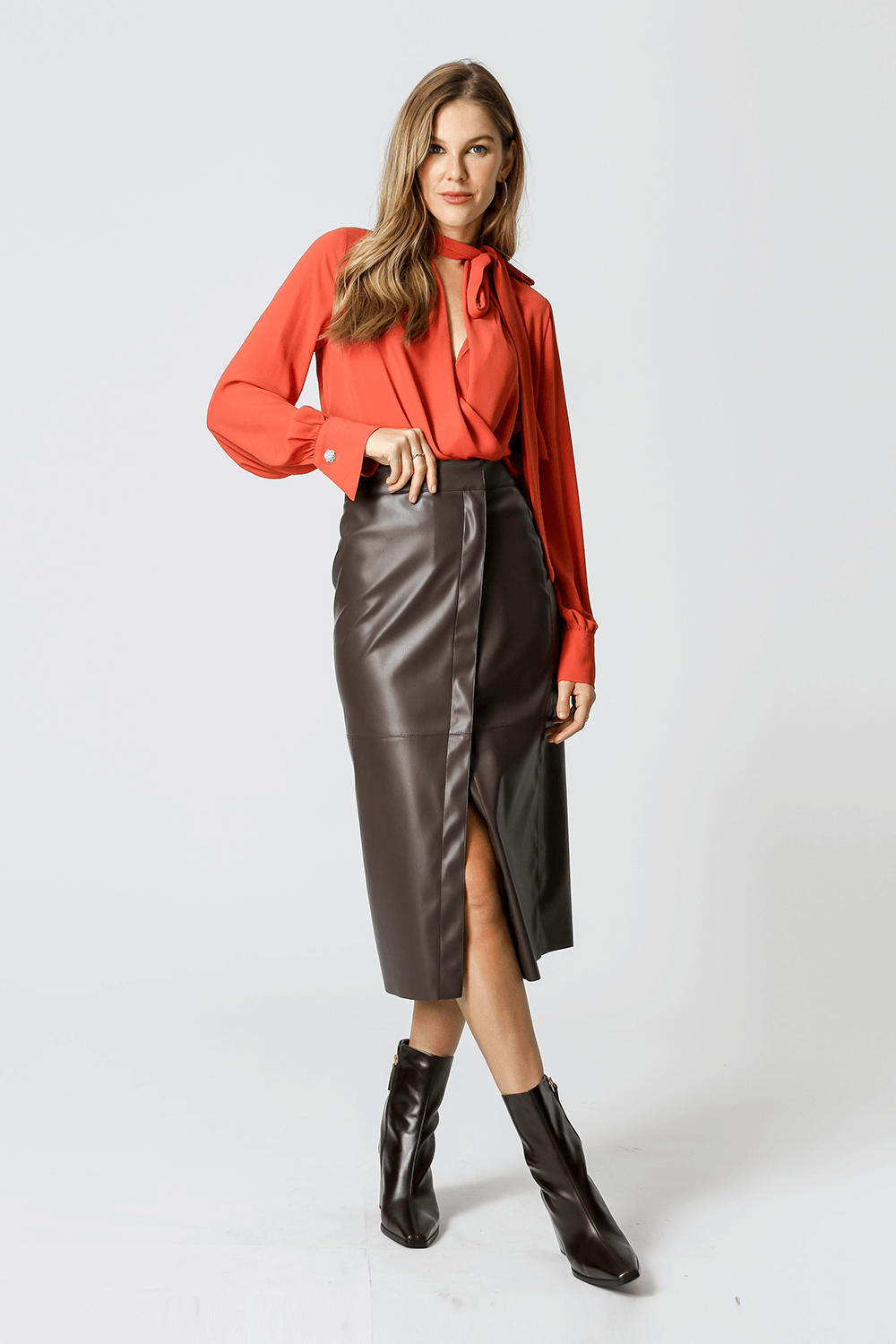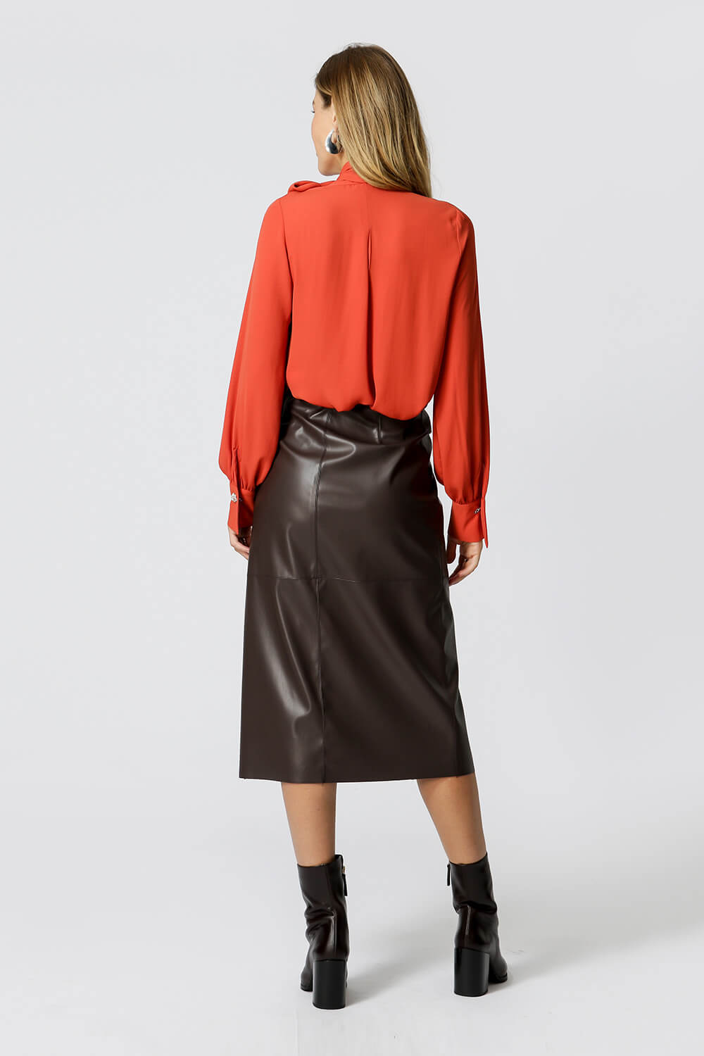 Blusa Com Laço E Manga Longa Bufante - TELHA 5
