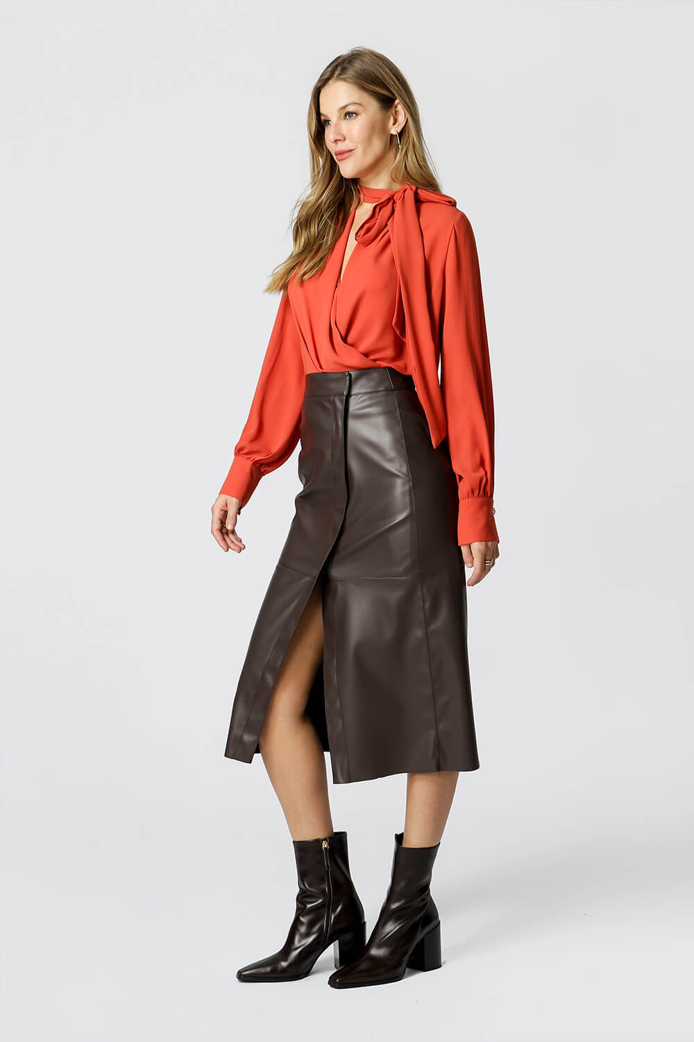 • Blusa Com Laço E Manga Longa Bufante - TELHA 5