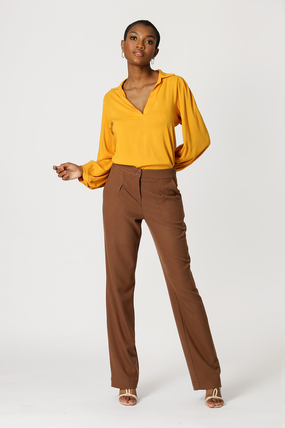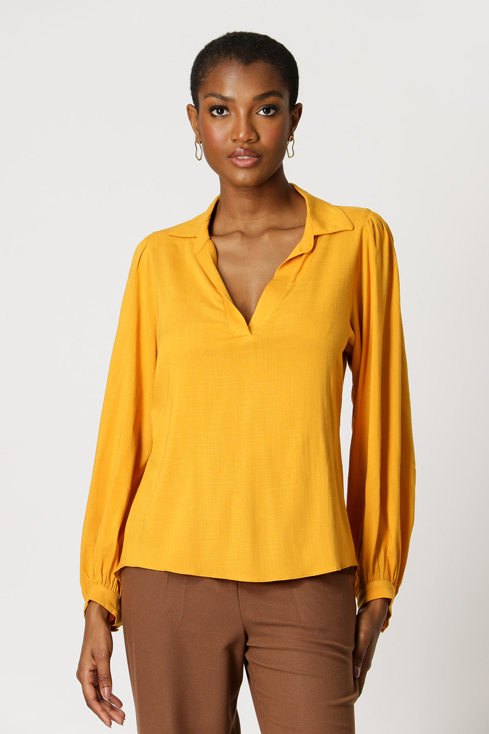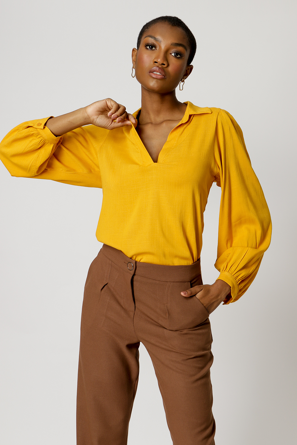 Blusa manga bufante confeccionada em tecido viscose. Uma Peça confortável e perfeita para qualquer ocasião.